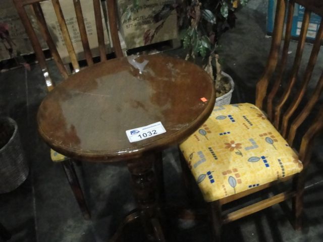 SMALL ROUND SINGLE PEDESTAL CAFE TABLE WITH 2 MATCHING CHAIRS