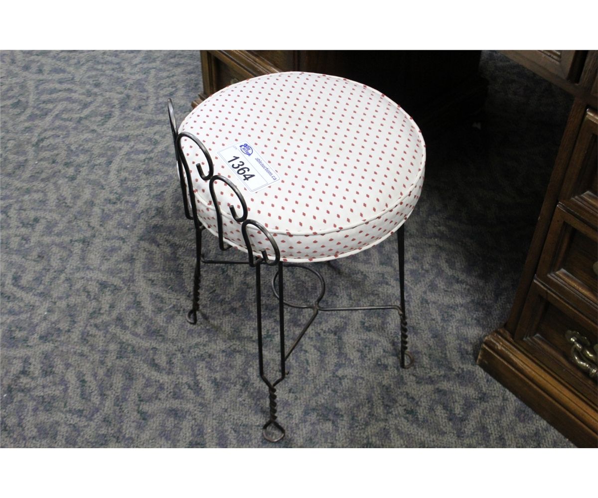 SMALL WROUGHT IRON STOOL WITH FABRIC SEAT