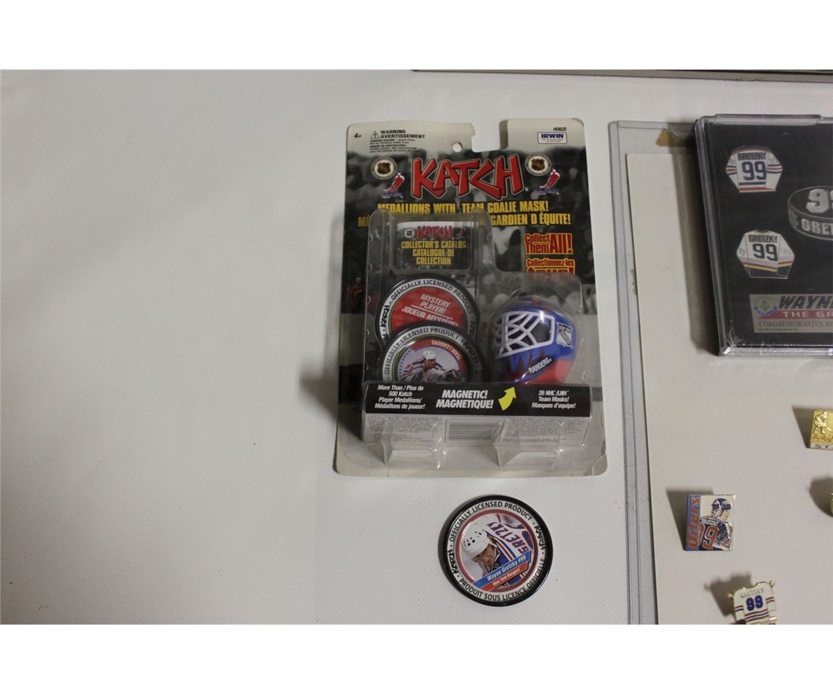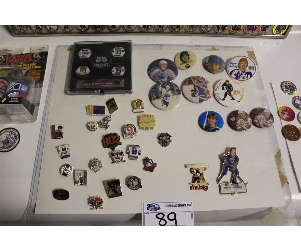 SMASH GRETZKY POG COLLECTOR POSTER WITH 18 POG SET, ASSORTED GRETZKY POGS, BUTTONS, KATCH CAPS AND PUSH PINS FETURING 2 LIONS CLUB PINS