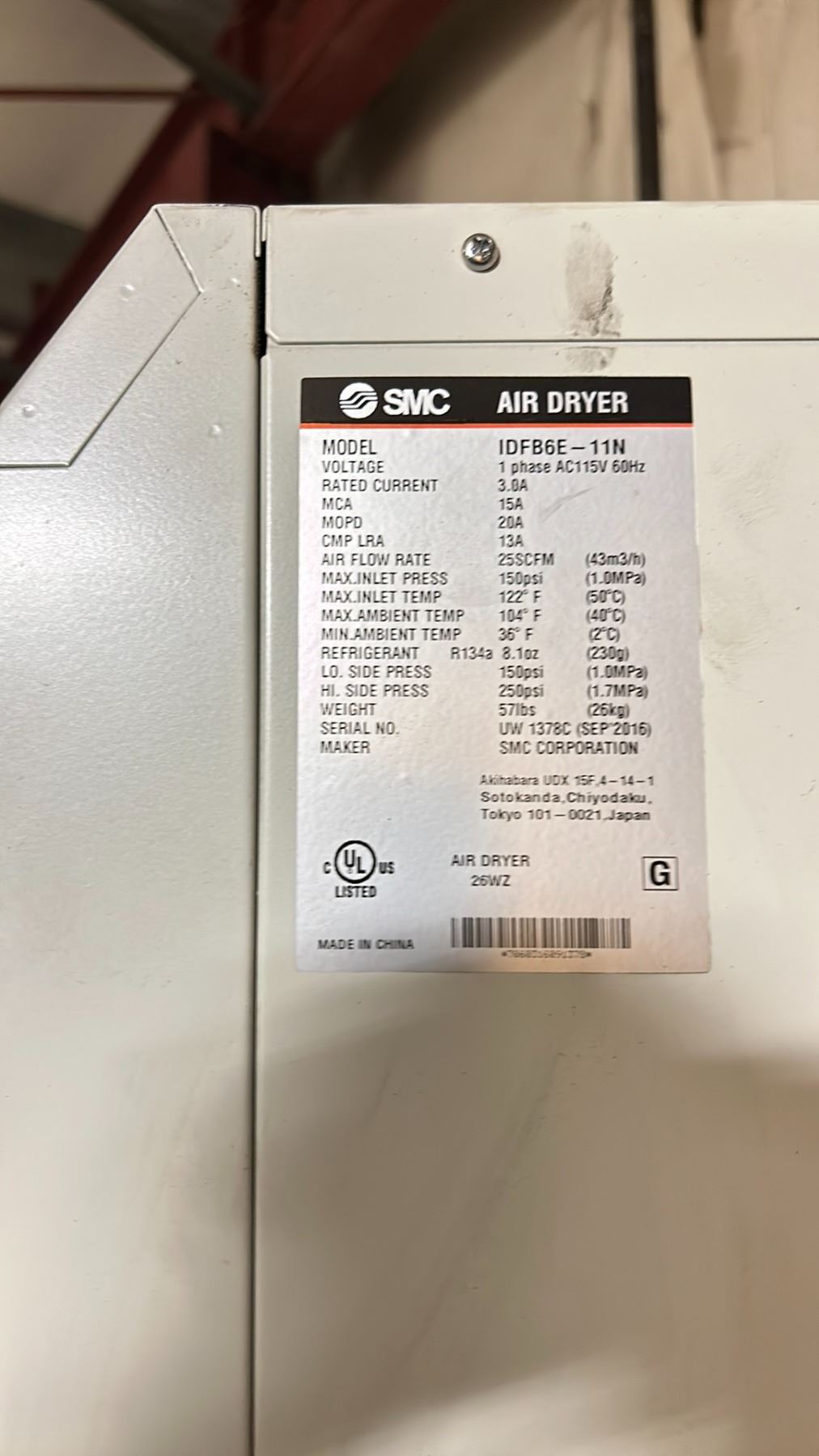 SMC AIR DRYER AND TANK. MODEL IDFB6E. 80 GALLON TANK. 115 VOLT.