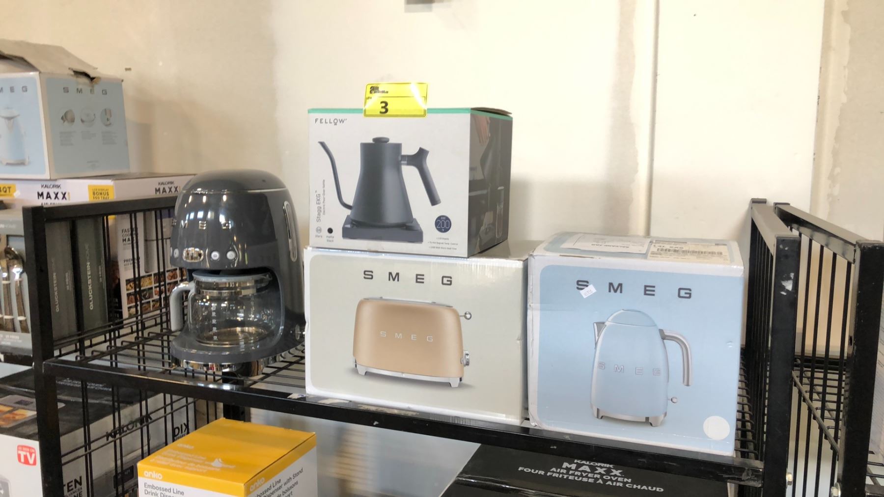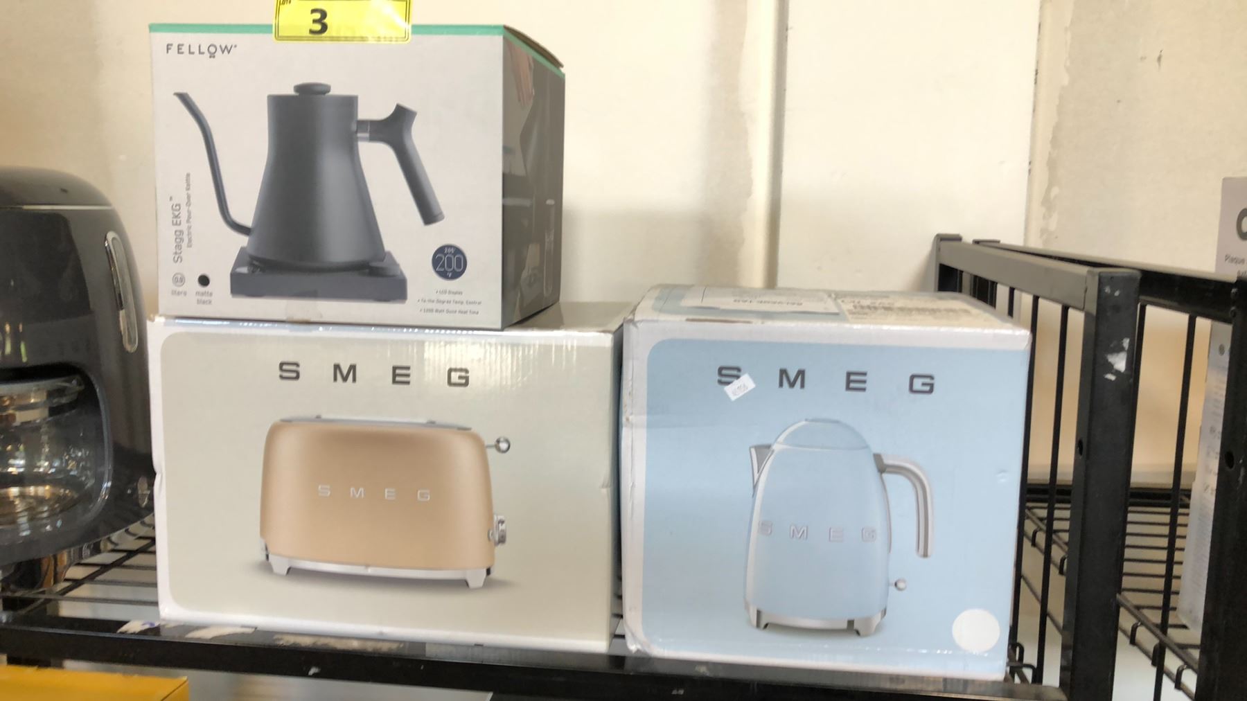 SMEG 2-SLICE TOASTER, COFFEE MAKER, KETTLE AND FELLOW STAG EKG ELECTRIC OVER KETTLE
