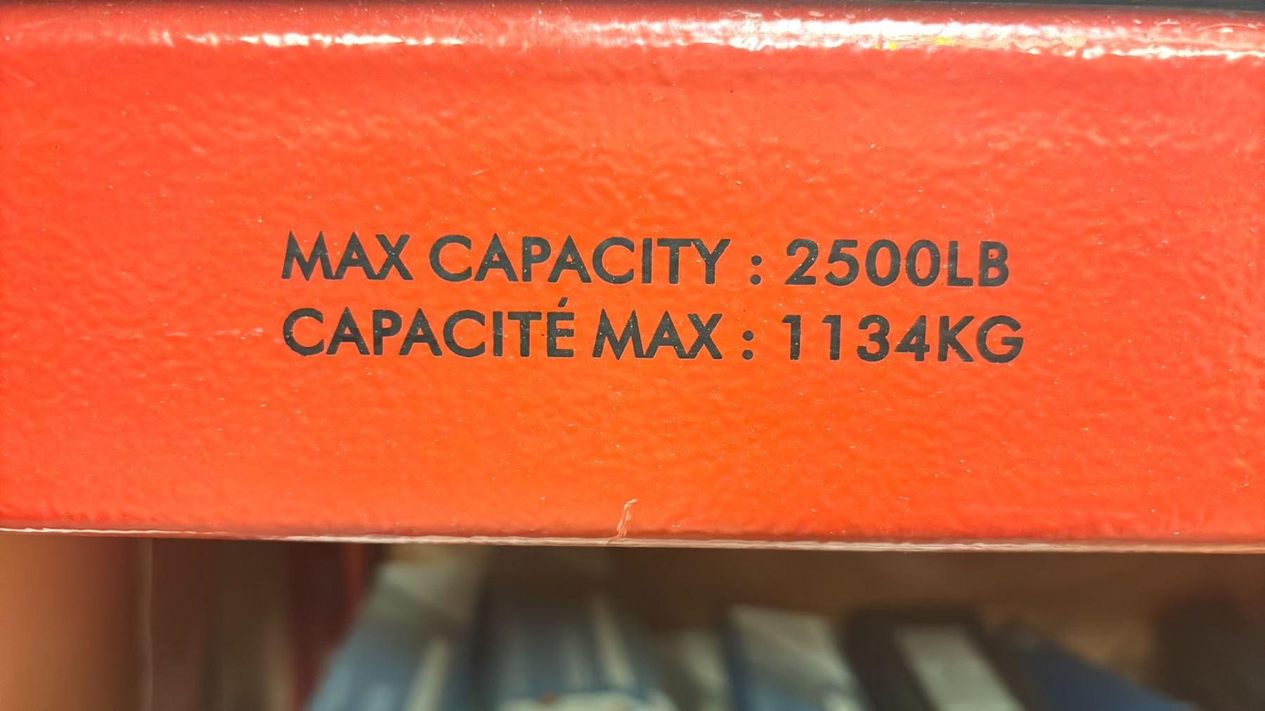 SNAP ON SHELF RACKING UNIT WITH MESH DECK & PLYWOOD SHELF WITH A MAX CAPACITY OF 2500 LBS