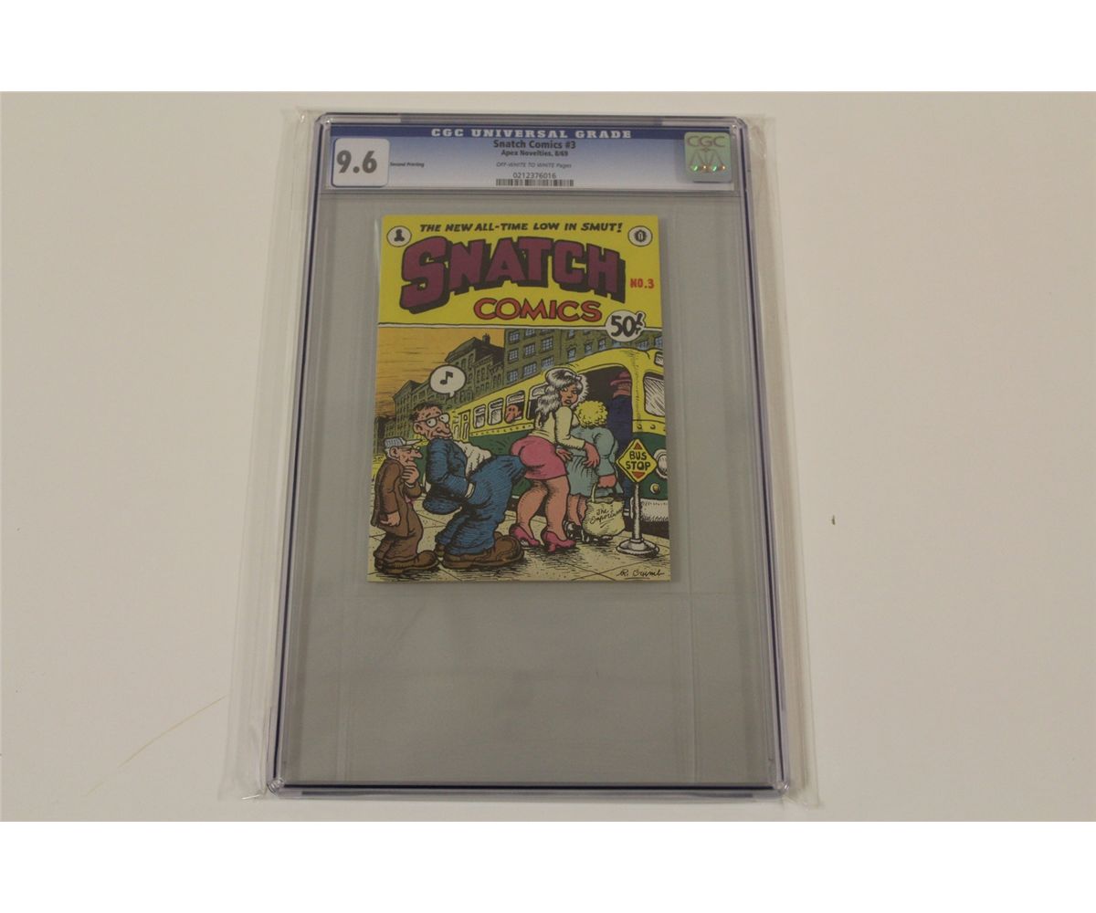 SNATCH COMICS #3 CGC 9.6 (NM+) (2ND PRINT) (1969) CLASSIC SILVER AGE UNDERGROUND, R. CRUMB COVER, STORY & ART! OFF-WHITE TO WHITE PAGES