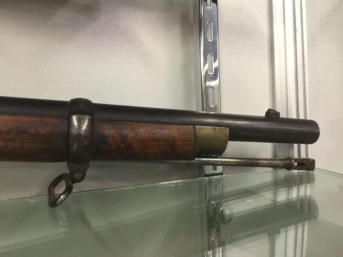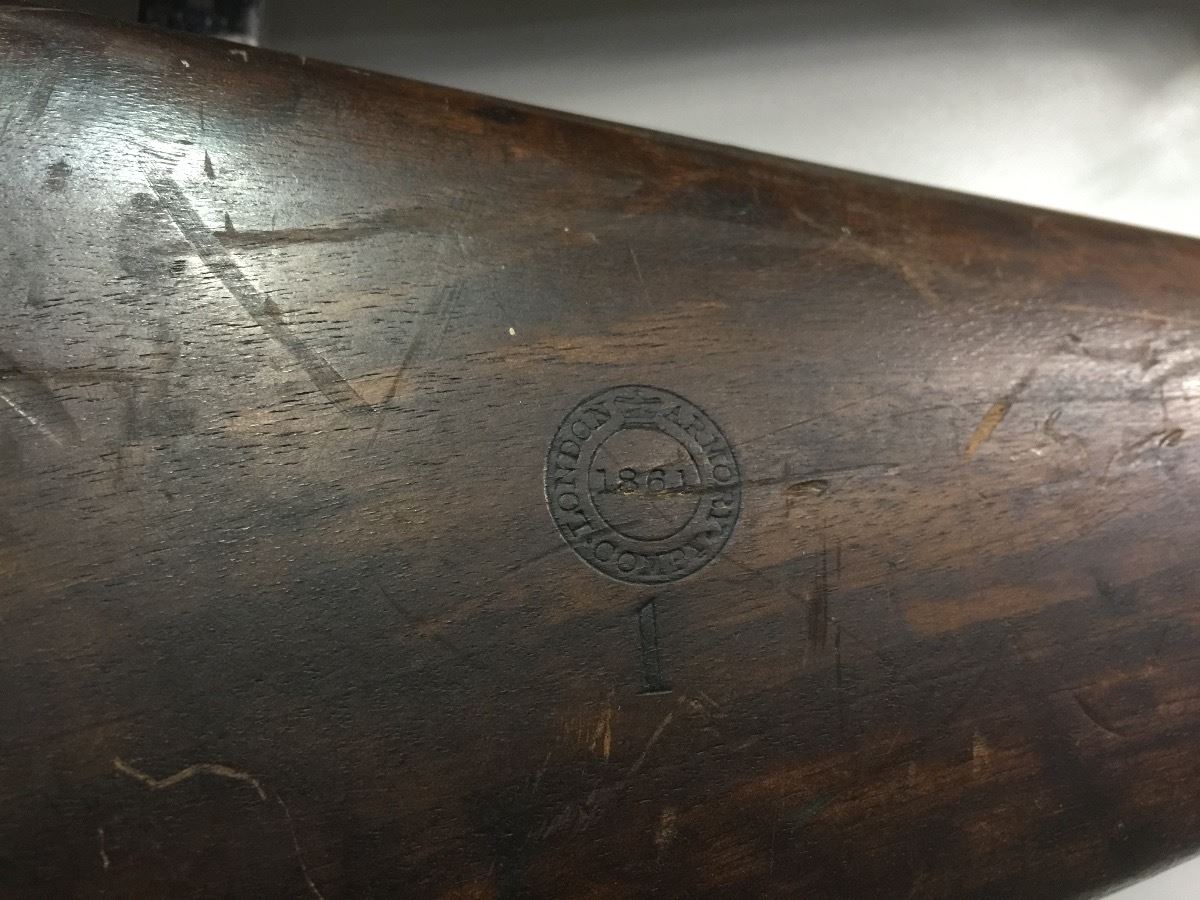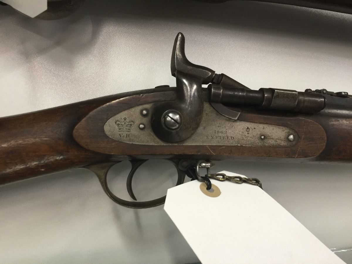 SNIDER-ENFIELD MK II LONG RIFLE, PATTERN 158 ENFIELD CONVERTED TO .577 SNIDER CARTRIDGE, 36" BARREL, 3 BANDS, NIPPLE PROTECTOR AND CHAIN. SOME RUST DUE TO ACTION. DATED 1862 GOOD CONDITION