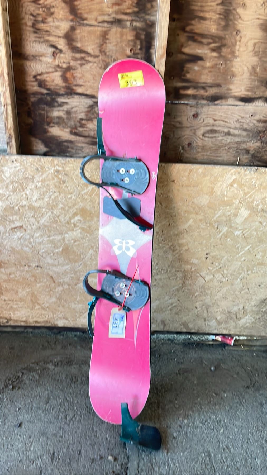 SNOWBOARD WITH BINDING DAMAGE