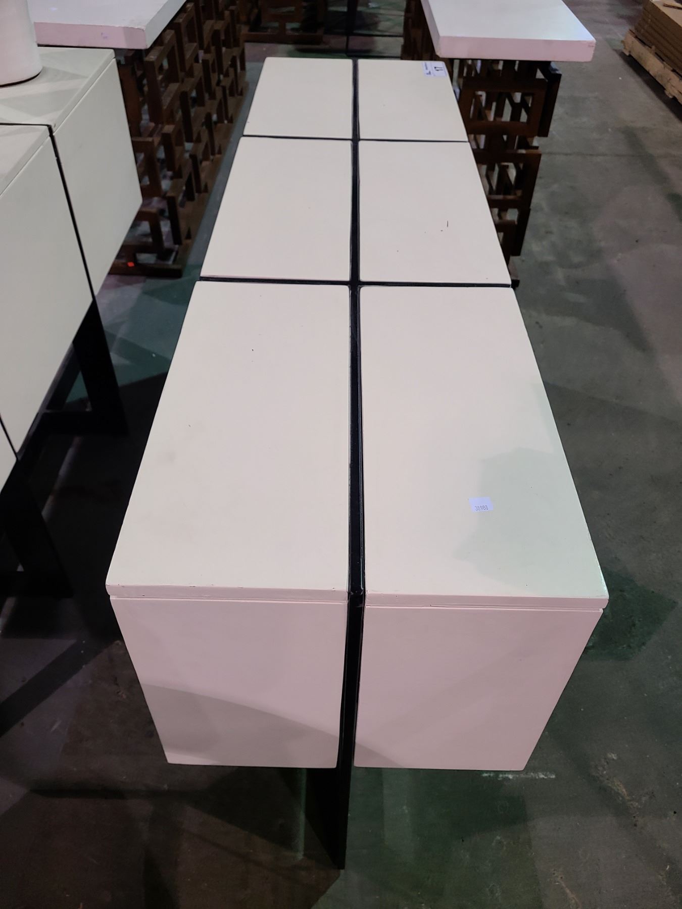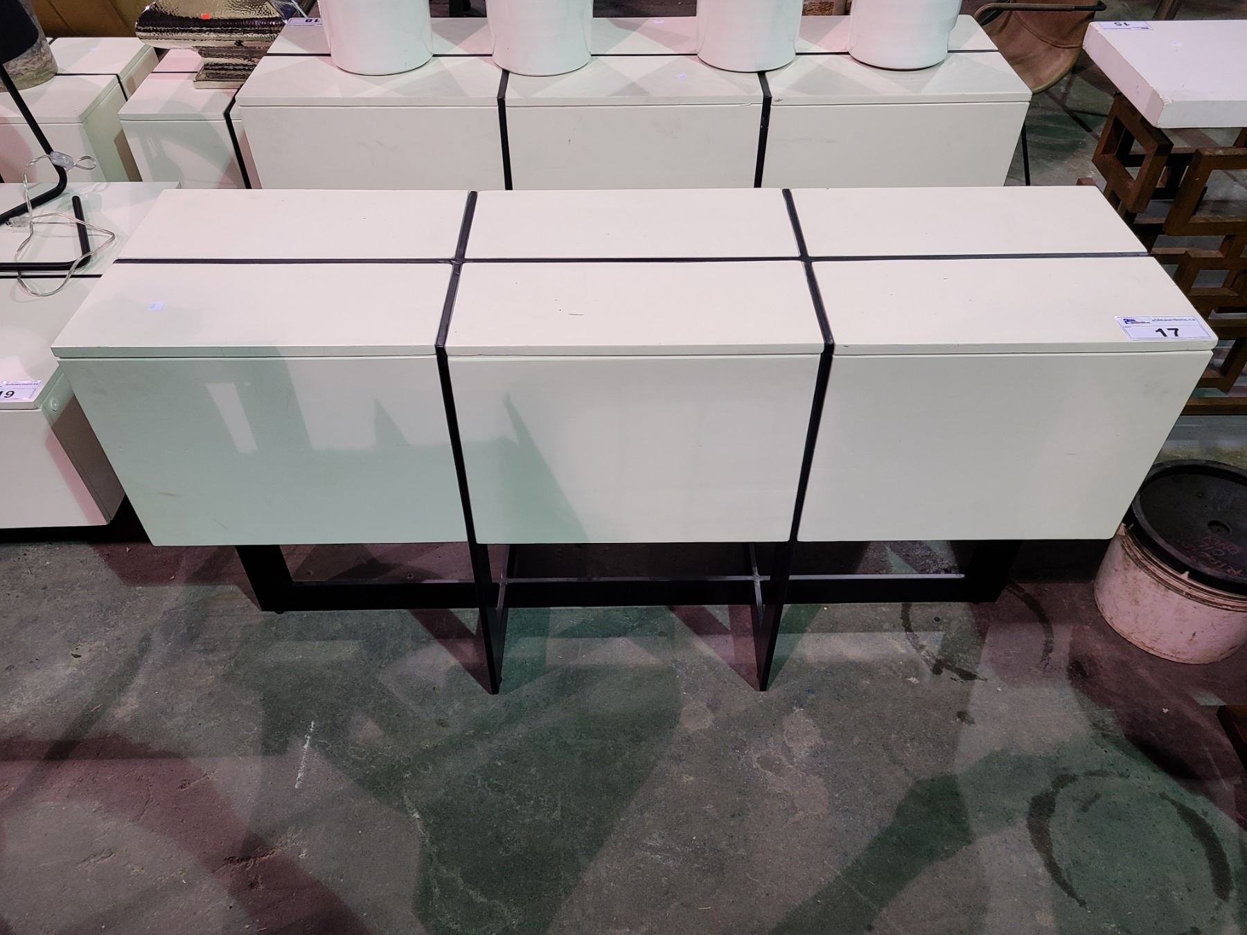 SOFA TABLE WITH CENTER DRAWER APPROX. W 16" L 56" H 30.5" WITH VISIBLE DAMAGE