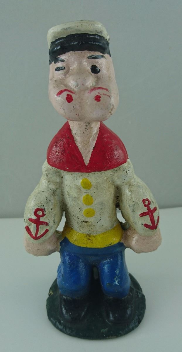 SOLID CAST IRON POPEYE SAILORMAN BANK. 6" TALL