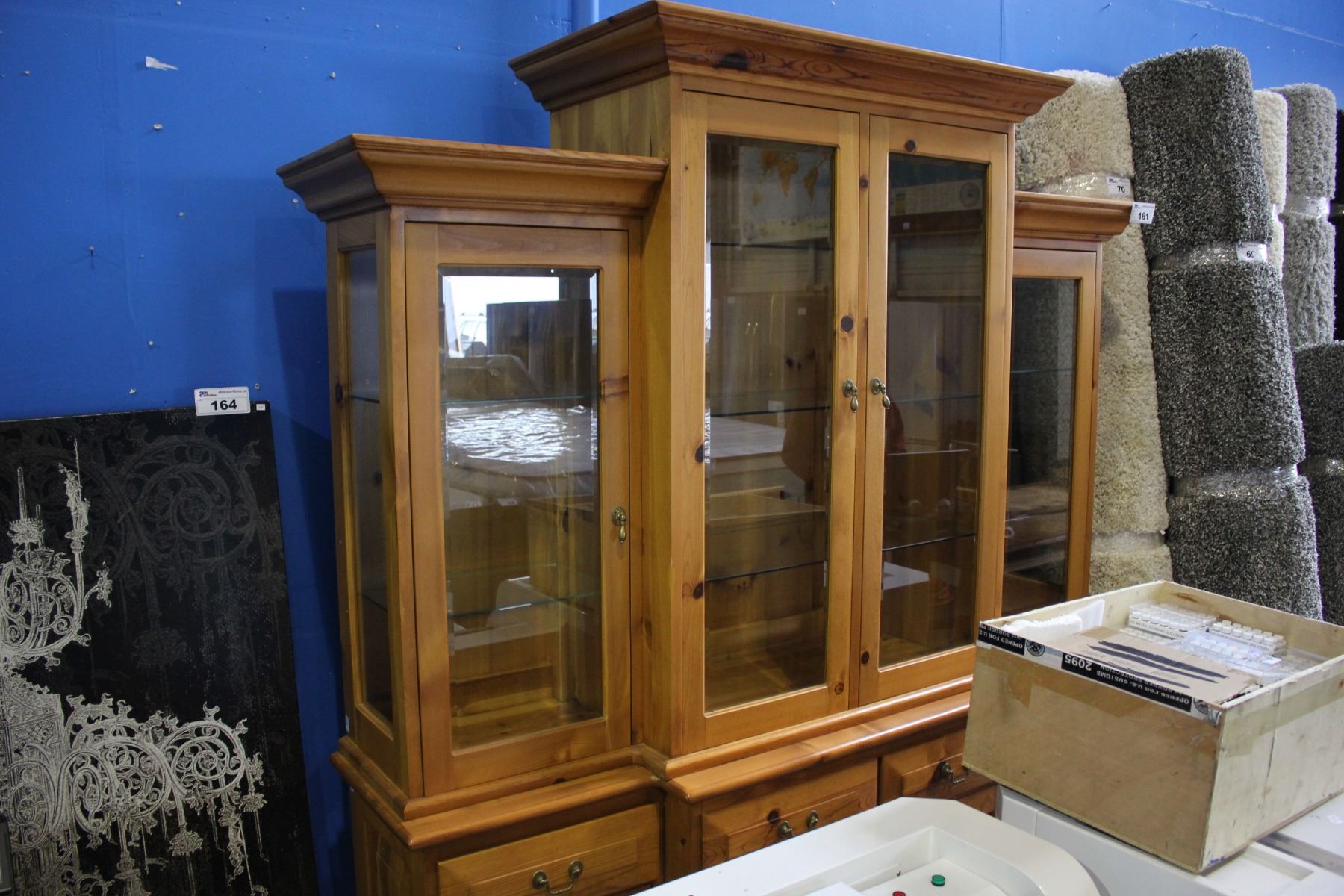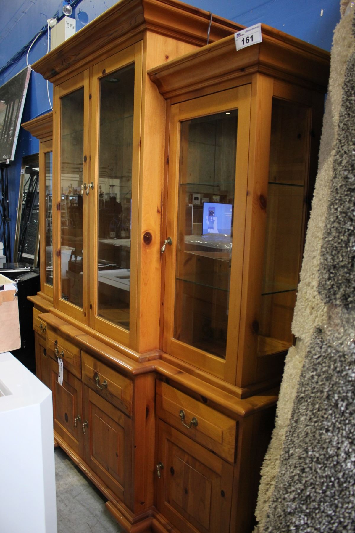 SOLID PINE ILLUMINATED GLASS FRONT HUTCH & BUFFET