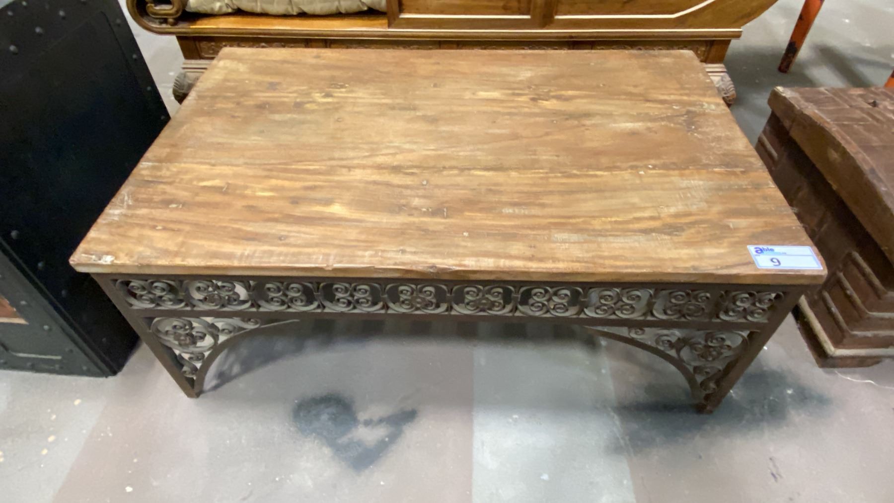 SOLID REPURPOSED WOODEN TOP WITH METAL BASE COFFEE TABLE