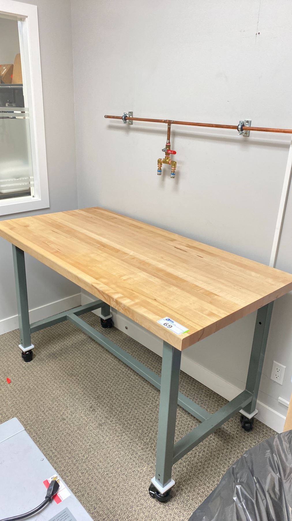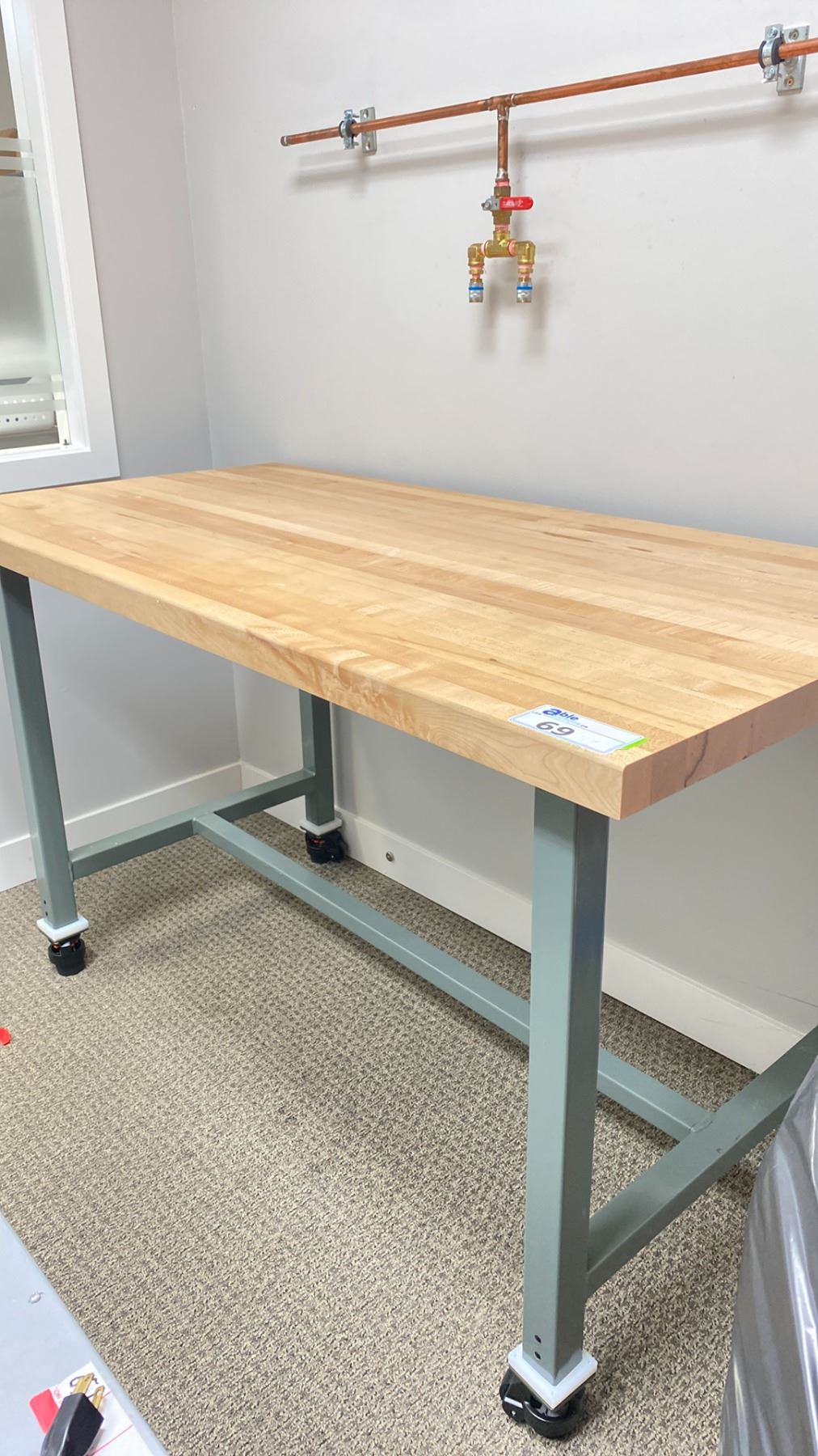 SOLID WOOD TOP MOBILE TABLE APPROX 5' X 30"