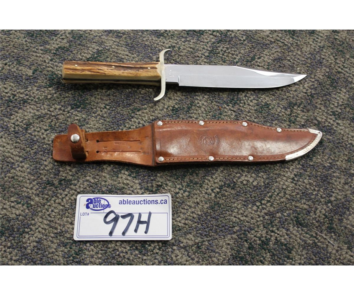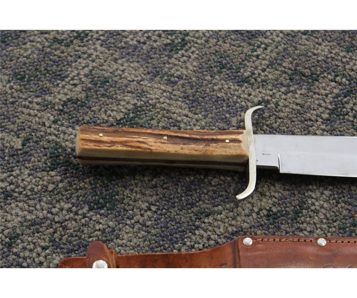 SOLINGEN STEEL, BONE HANDLE BOWIE HUNTING KNIFE WITH CASE