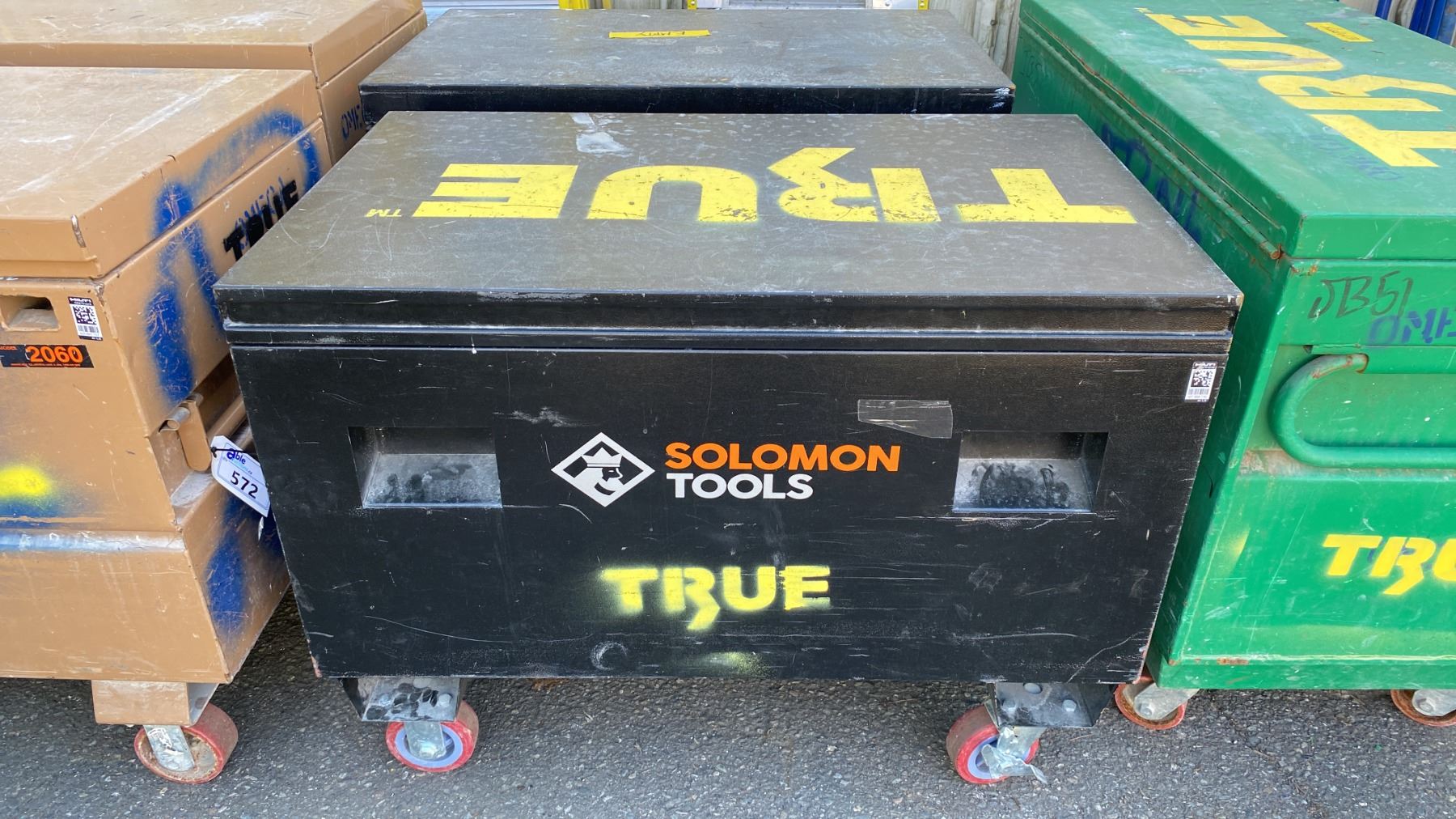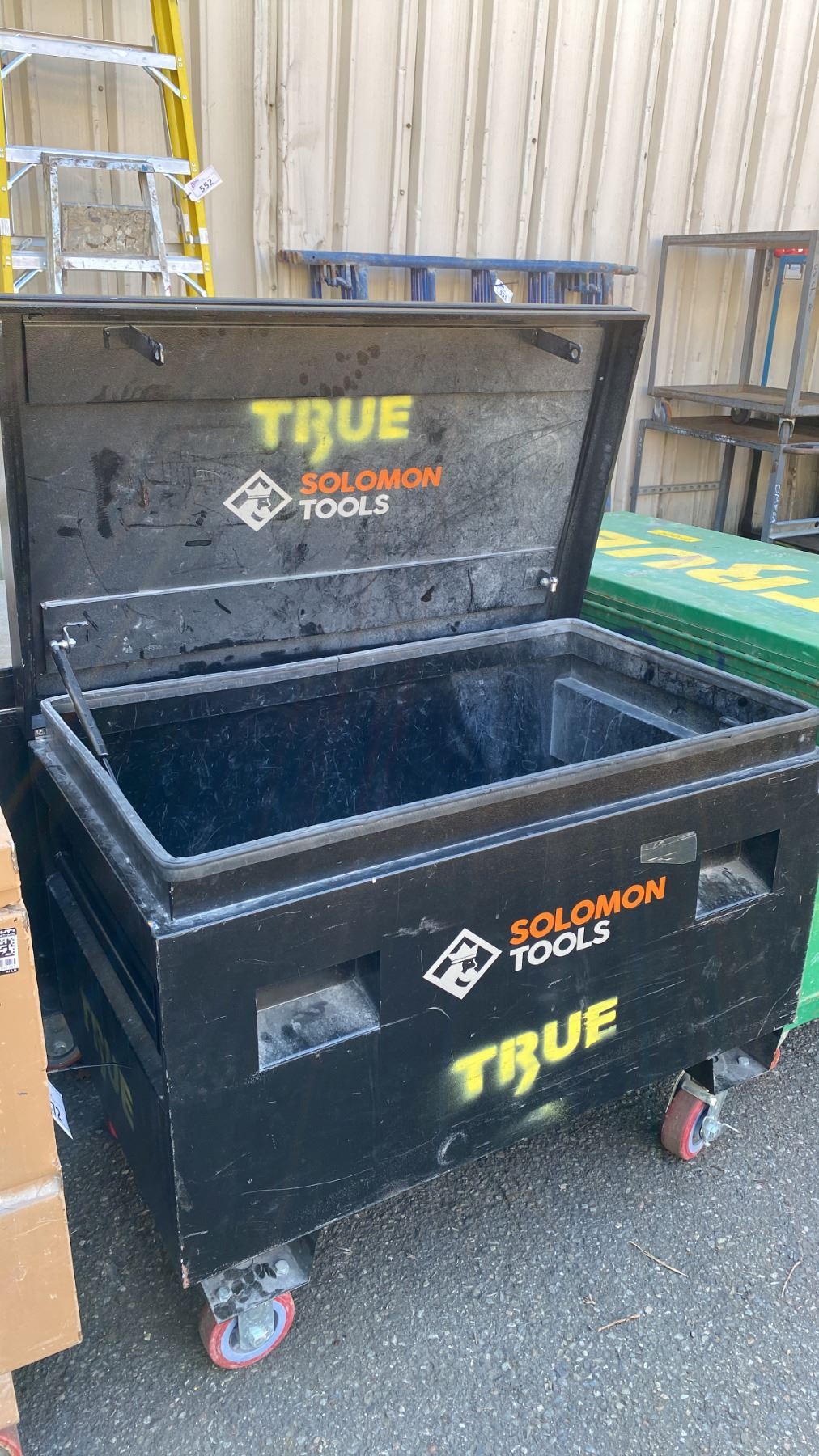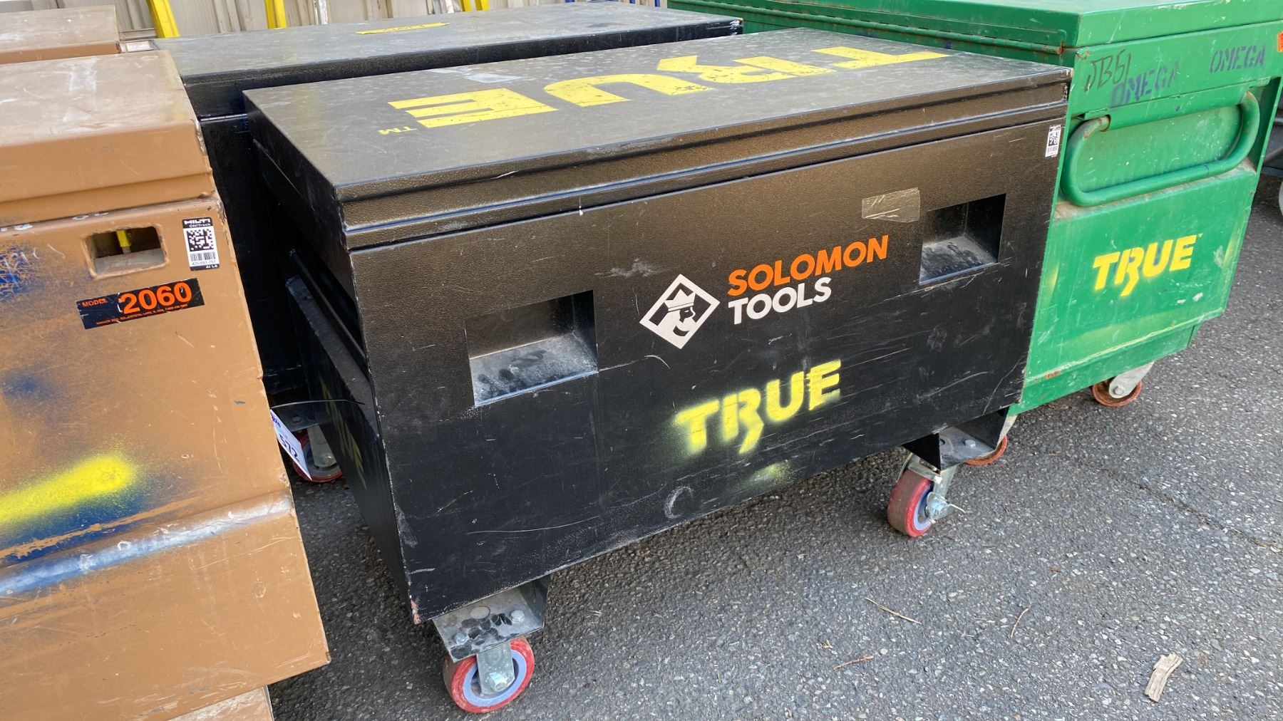 SOLOMON TOOLS BLACK METAL MOBILE JOB BOX APPROX 42"L X 25"D X 32"H