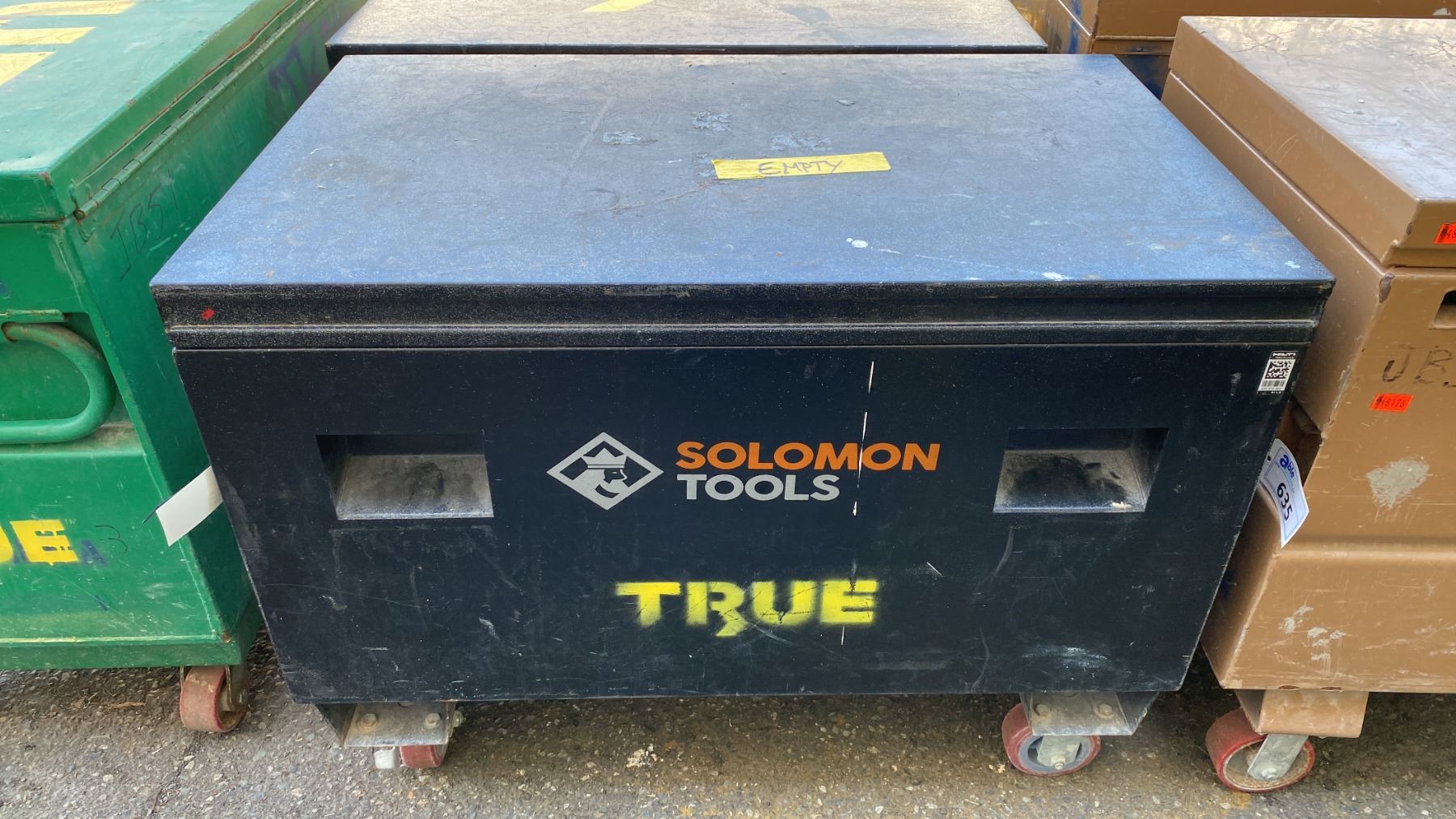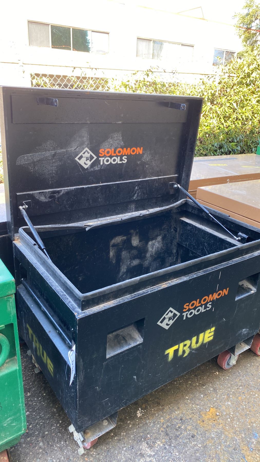 SOLOMON TOOLS BLACK METAL MOBILE JOB BOX APPROX 42"L X 25"D X 32"H