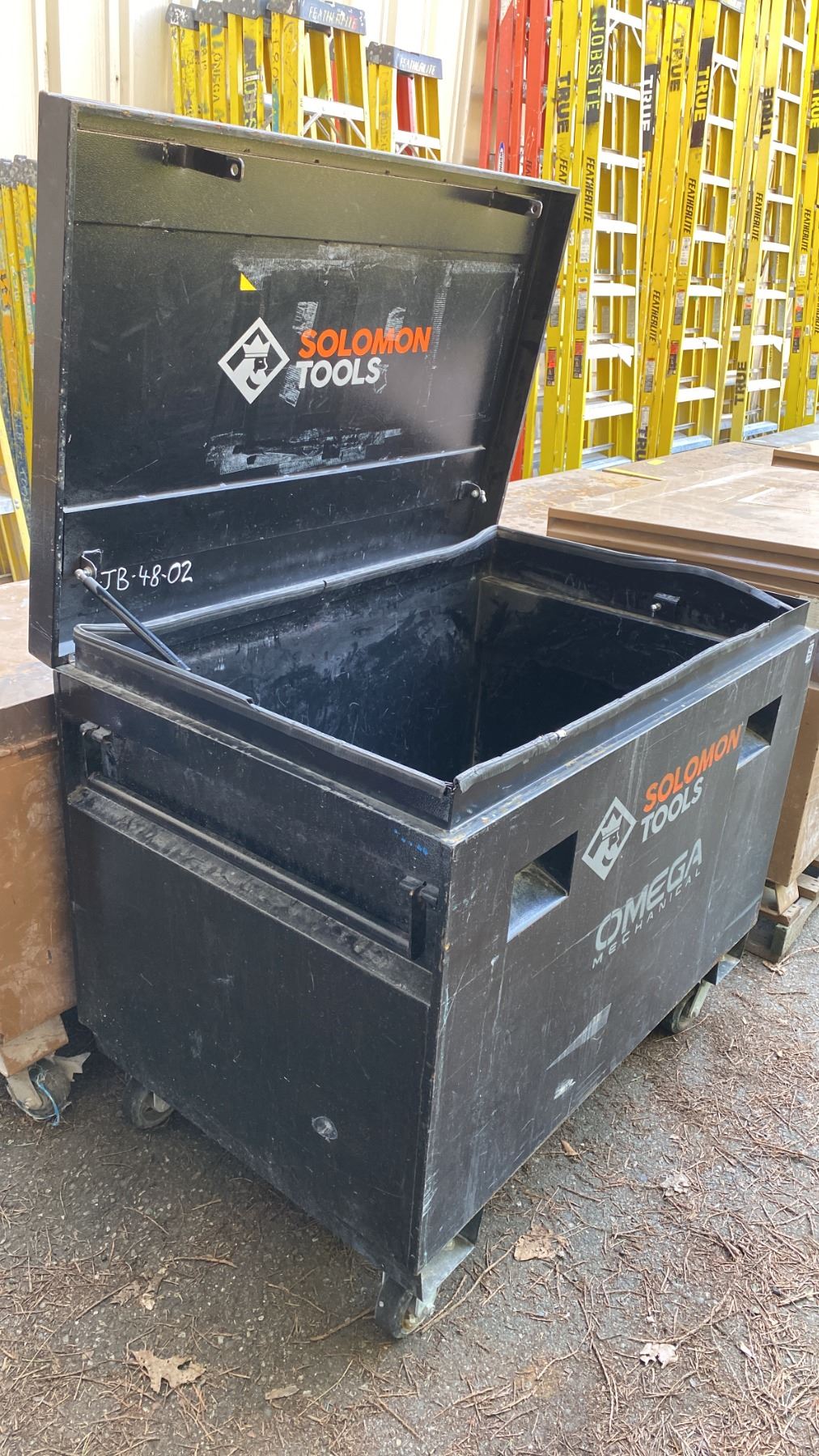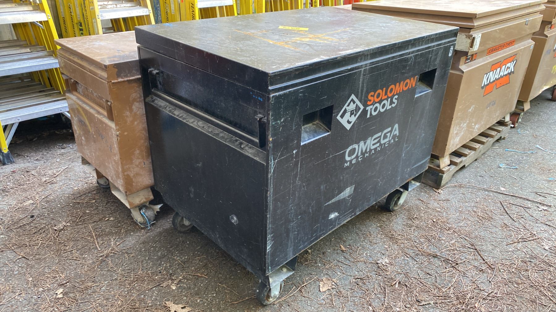 SOLOMON TOOLS BLACK METAL MOBILE JOB BOX APPROX 48"L X 31.5"D X 40"H
