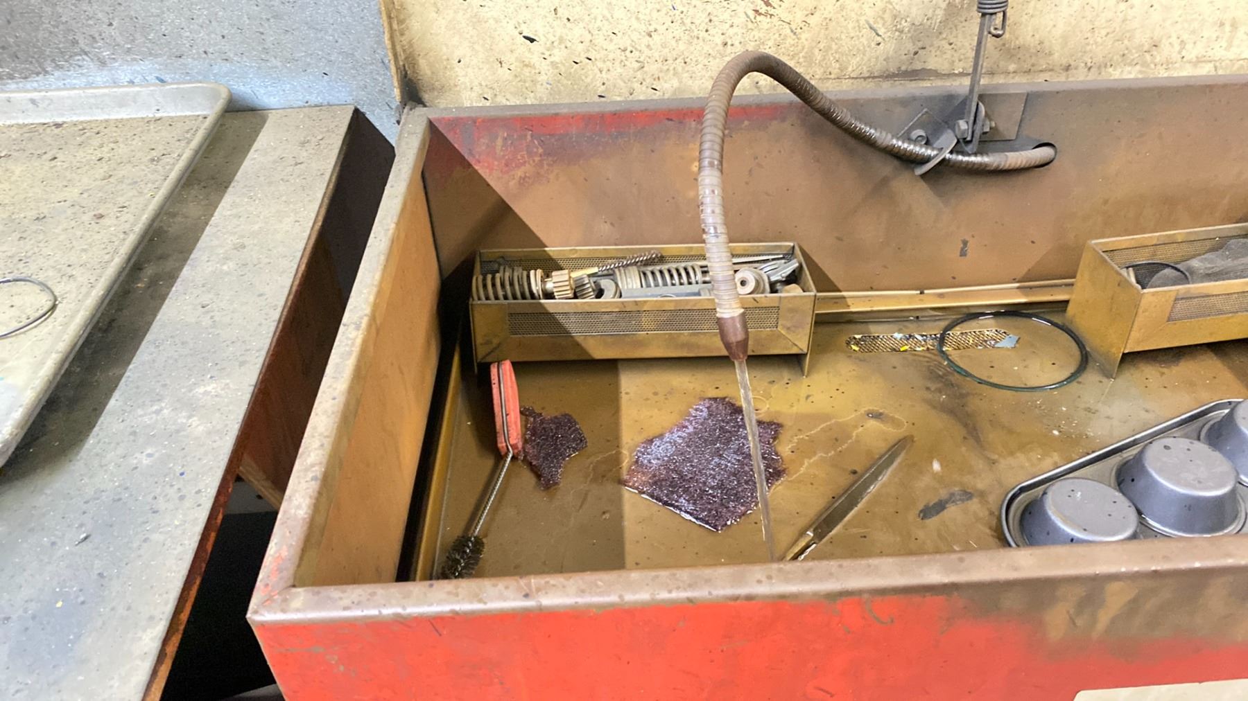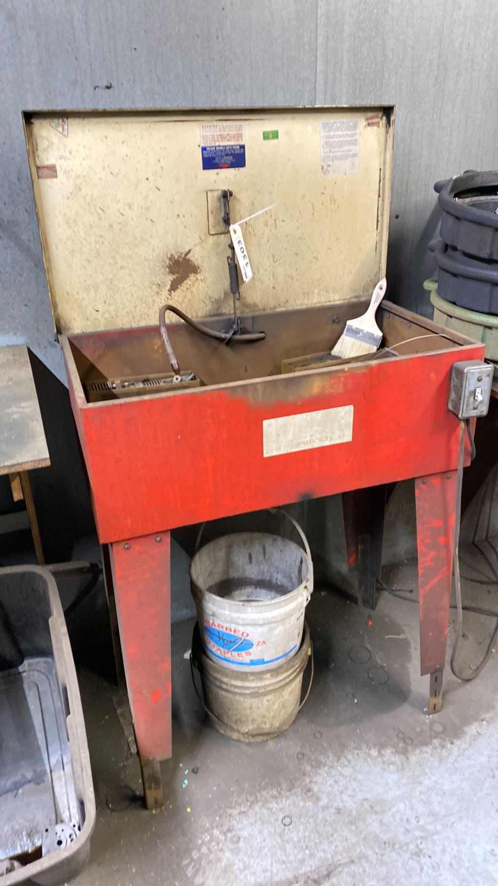 SOLVENT TANK WITH PUMP ON LEGS 32"W