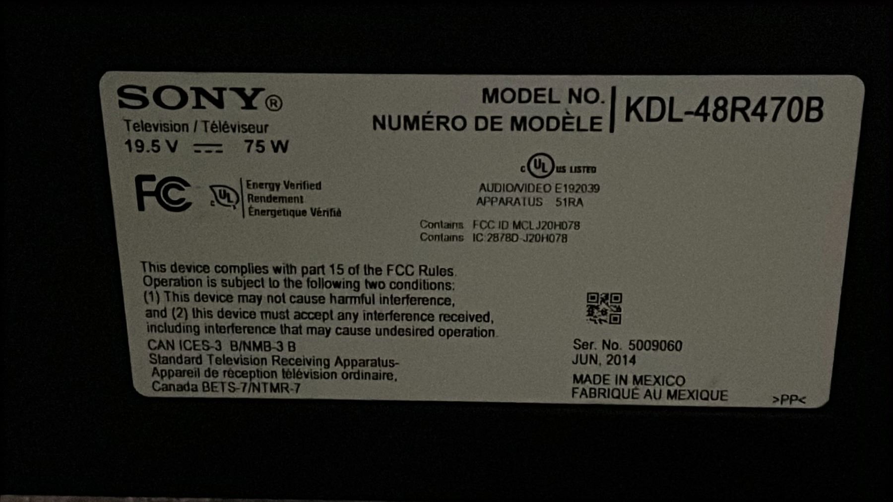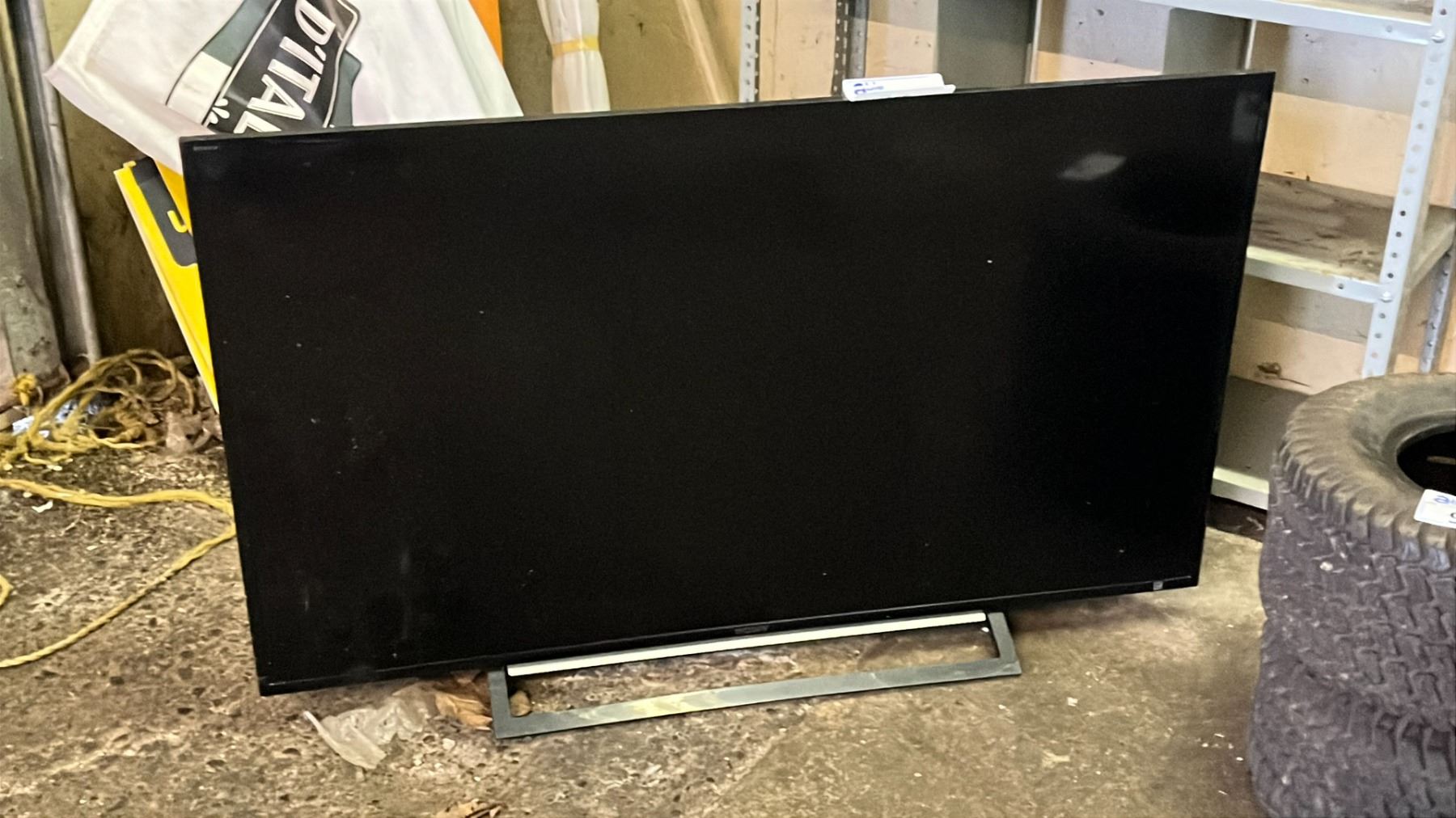SONY 47" TV WITH STAND (UNKNOWN WORKING CONDITION, NO POWER CORD, NO REMOTE) & UMBRELLA