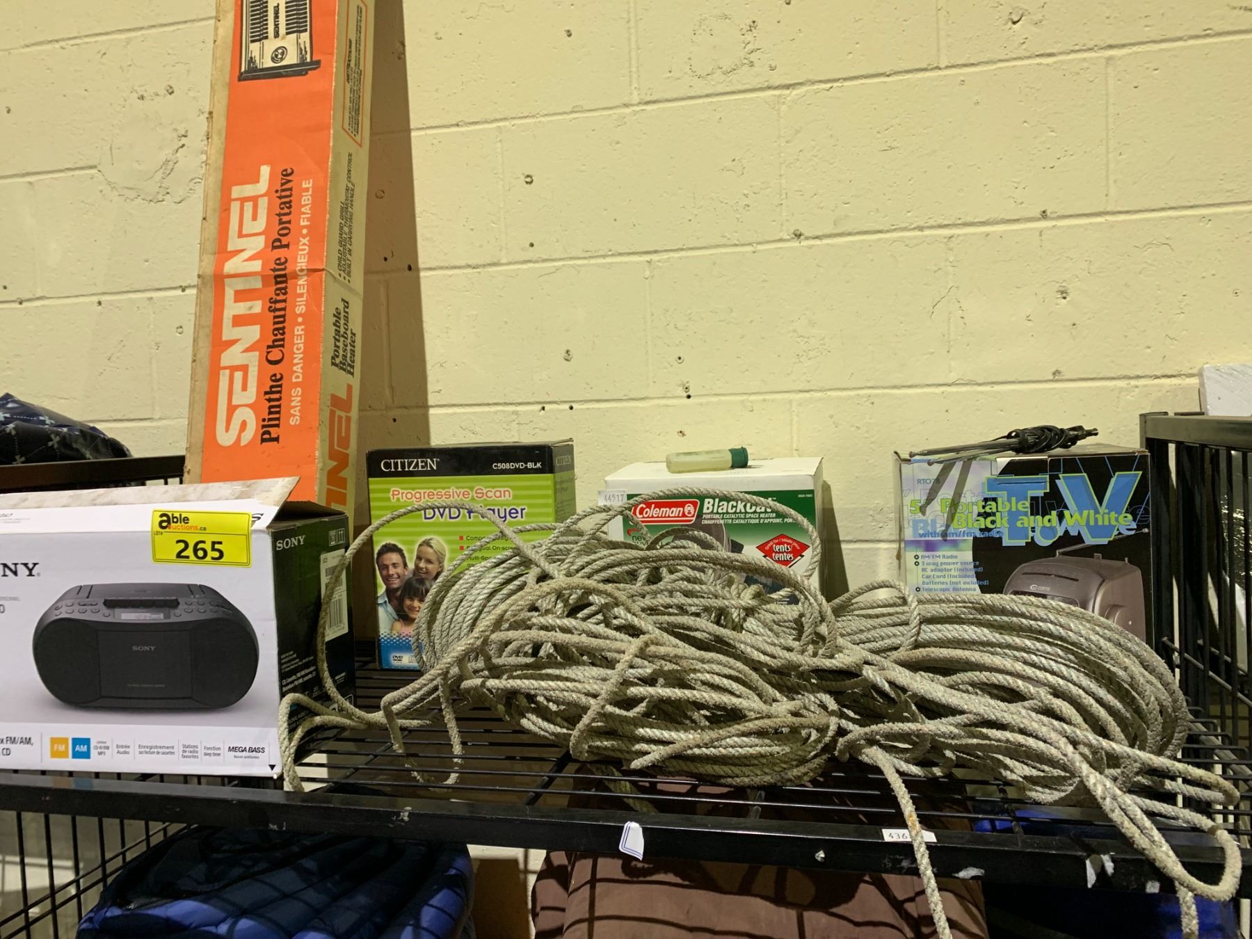 SONY CD PLAYER, ROPE, DVD PLAYER, HEATER AND MORE