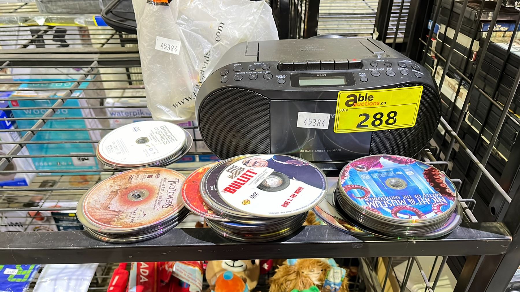 SONY PORTABLE CD PLAYER, ASSORTED DVD'S, CD'S & PINS