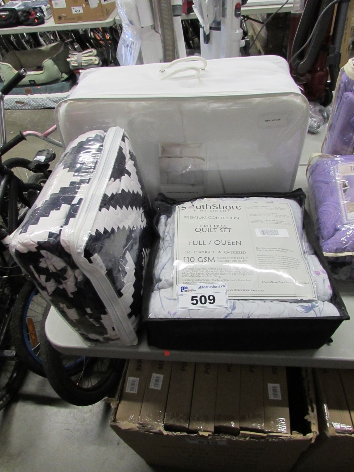 SOUTHSHORE FULL QUEEN QUILT SET, TWIN DOWN ALTERNATIVE COMFORTER & SHEET SET (UNKNOWN SIZE)