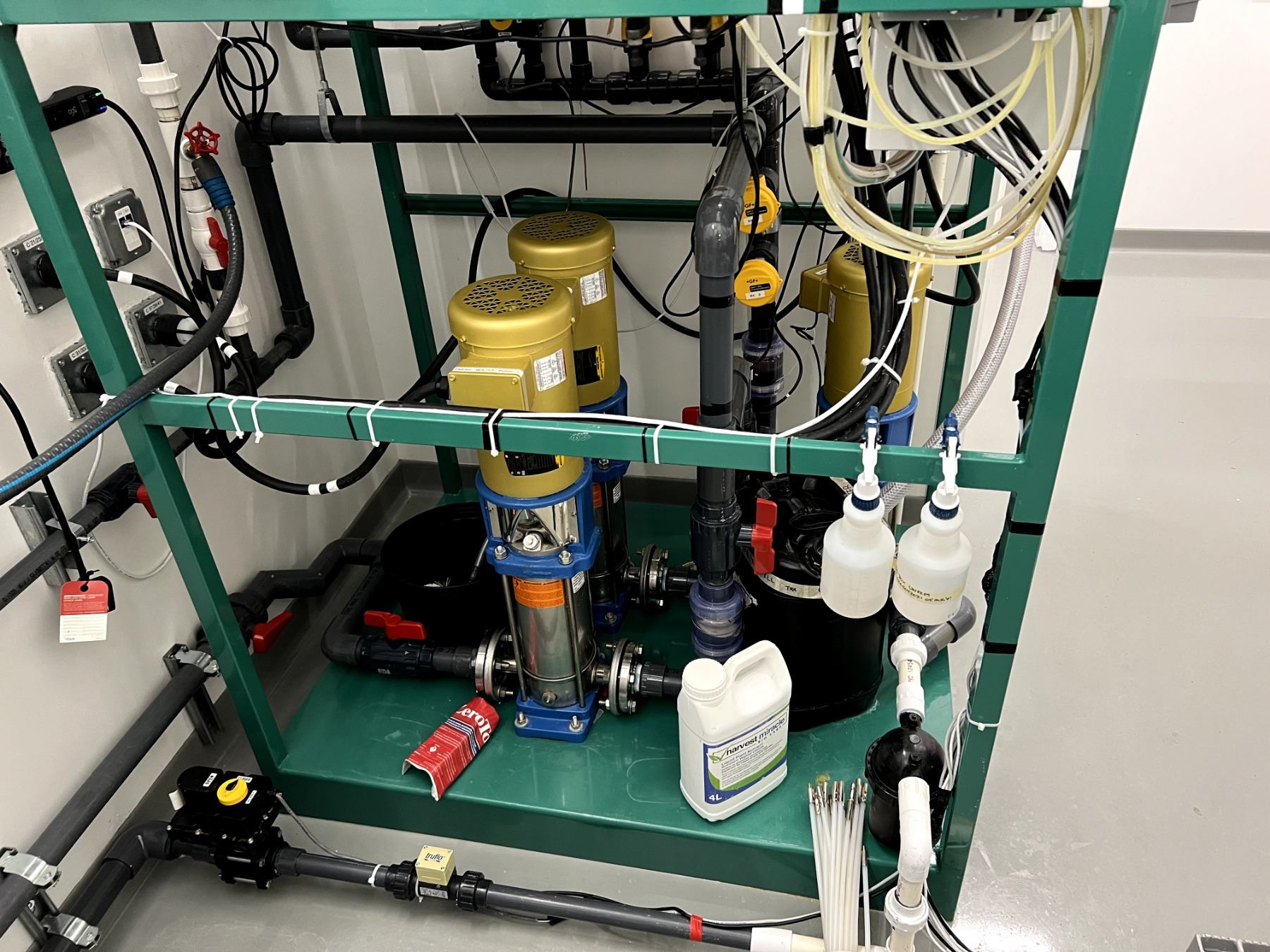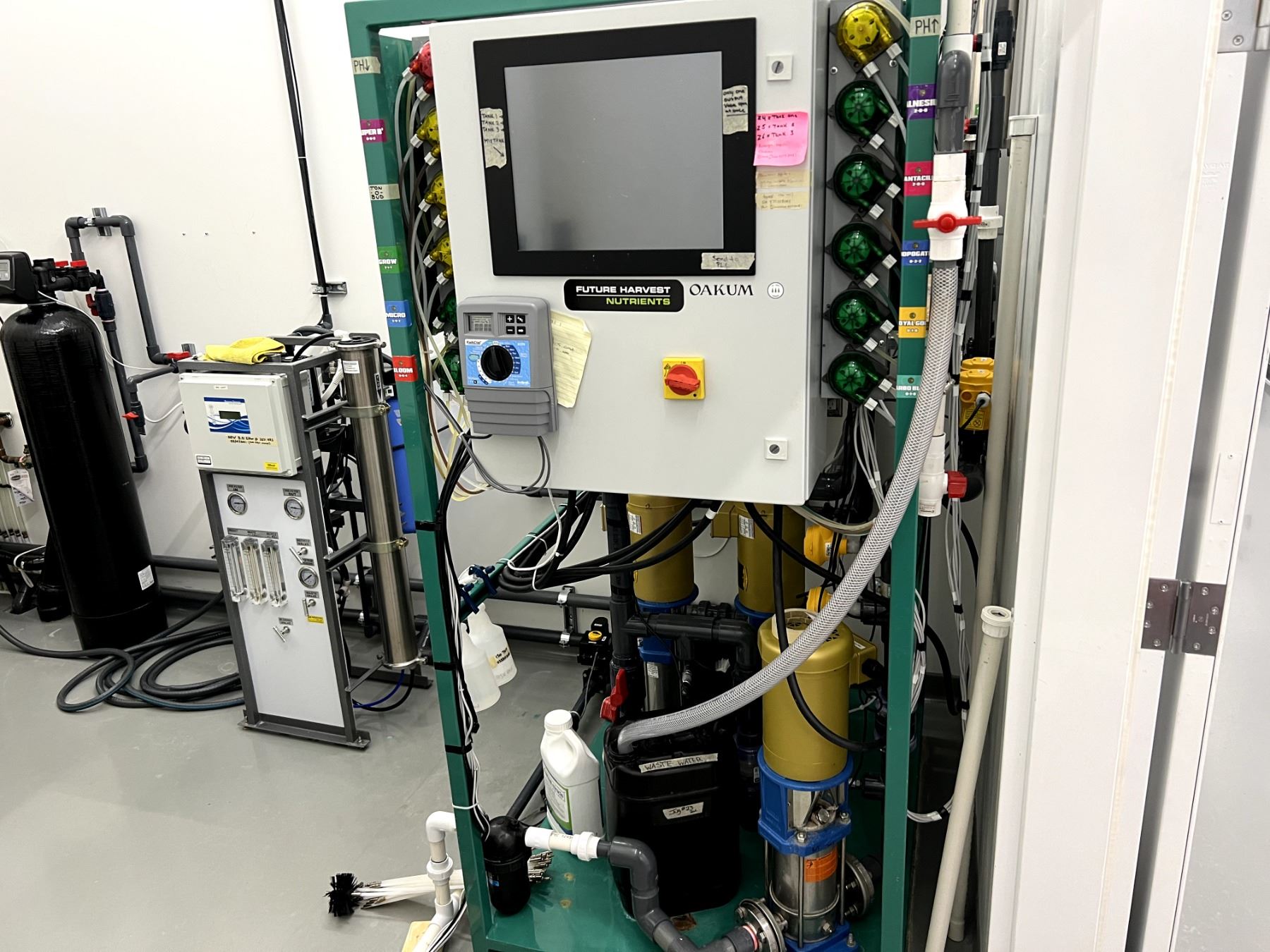 SPECIALIZED FERTIGATOR USED FOR AUTOMATICALLY MIXING UP TO 12 NUTRIENT INPUTS INC 2 UV FILTERS. BUILT IN PH PROBE. 3 WATER PUMPS UP TO 5 ZONES. SYSTEM SUPPLIED BY GFS (GLOBAL FERTILIZATION SYSTEMS). SOME DISCONNECTION REQUIRED