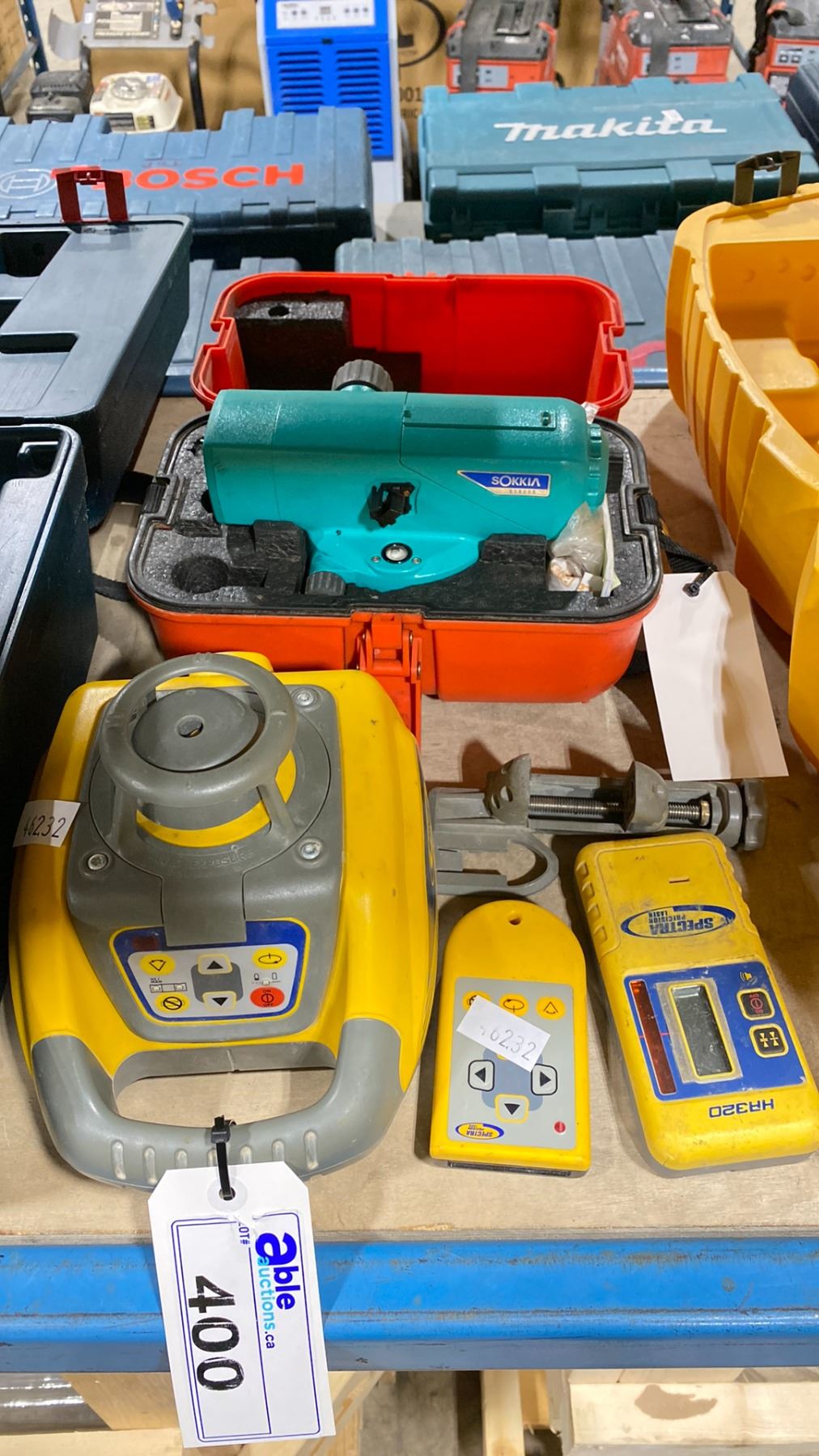 SPECTRA PRECISION HV101 INDUSTRIAL LASER LEVEL, HR 320 ATTACHMENT, & SOKKIA 556005 SURVEYORS TOOL IN HARD TRANSPORT CASE