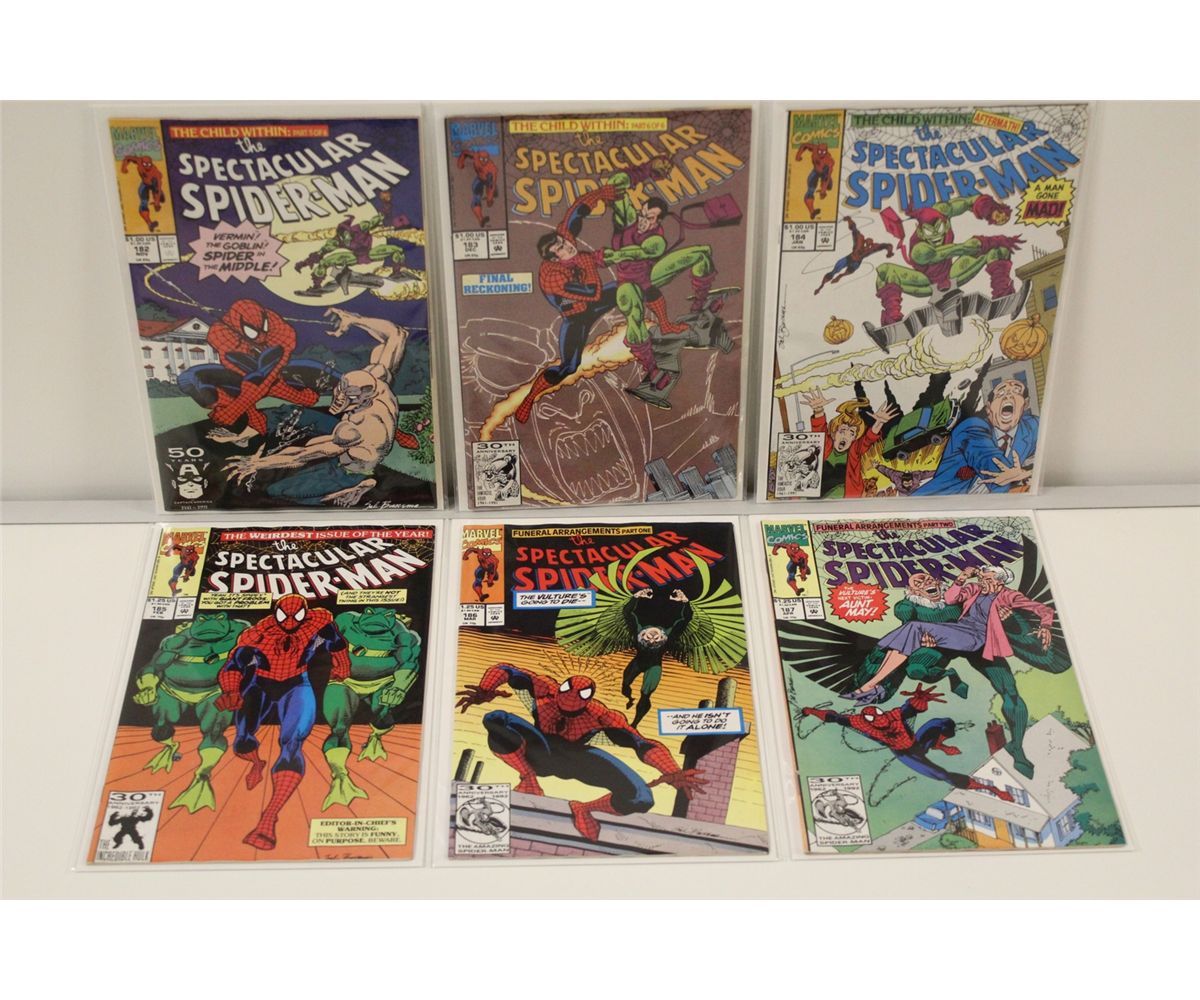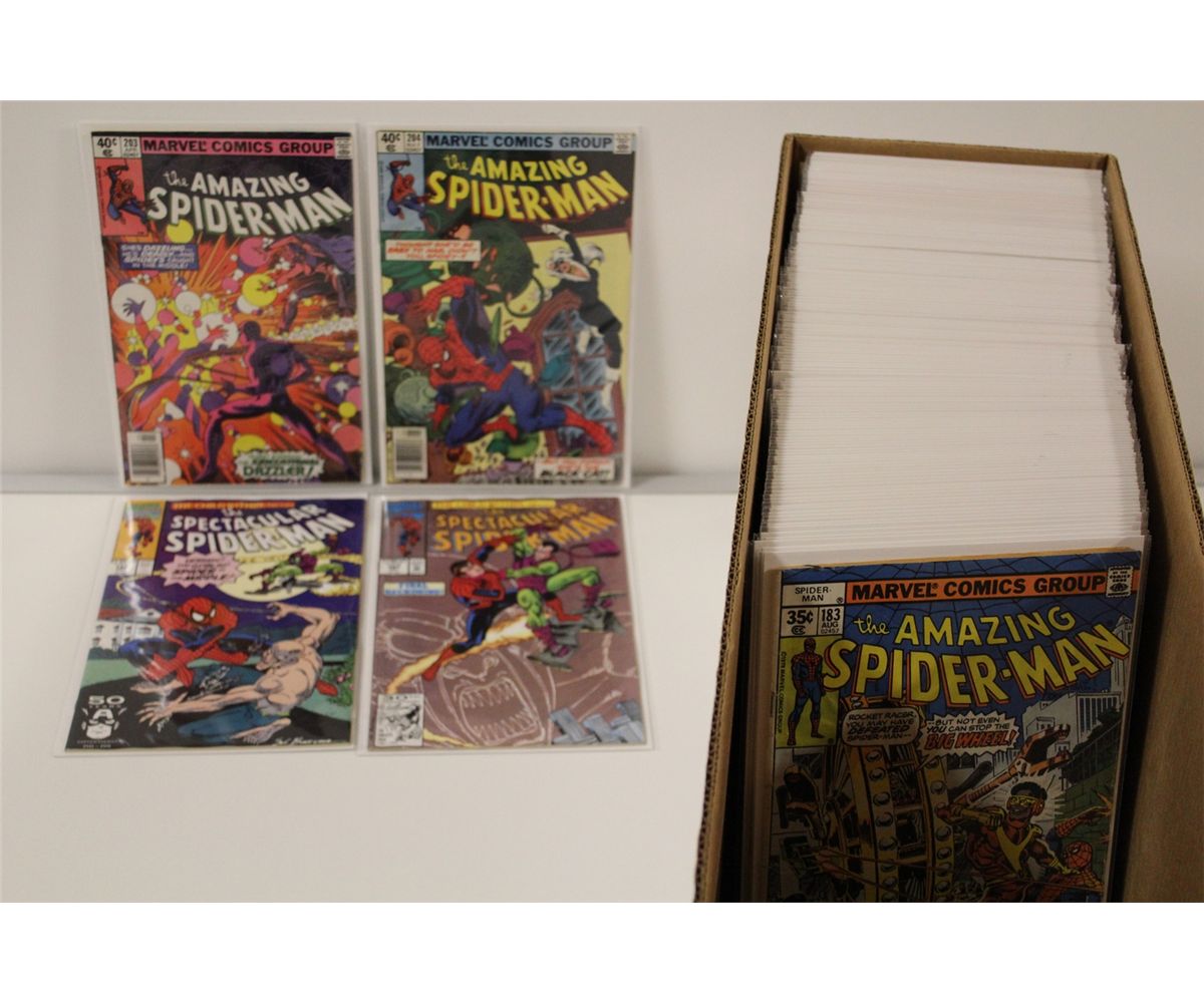 SPIDER-MAN 3 LARGE RUNS (AMAZING, SPECTACULAR & SPIDEY) (1974-94) INCLUDES 78 ISSUES OF AMAZING BETWEEN #183-246, 54 ISSUES OF SPECTACULAR BETWEEN #182-246 + ANNUAL #1-14 & 9 ISSUES OF SPIDEY SUPER STORIES BETWEEN #4-37 + 4 SPIDEY ONE-SHOTS! 145 BOOKS TOTAL, NO DUPLICATES, MIXED GRADES WITH MANY HIGHER GRADE, NM RANGE COPIES, LOTS OF GUIDE VALUE HERE, CHOICE LOT!