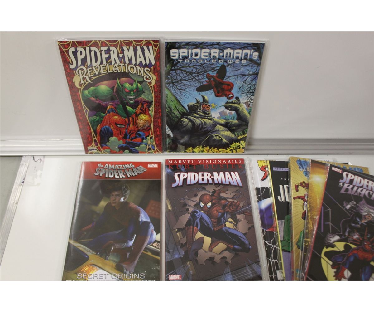 SPIDER-MAN  9 DIFFERENT OUT OF PRINT & NEW TRADE PAPERBACKS. INCLUDES 1 HARD COVER, HIGH GRADE.