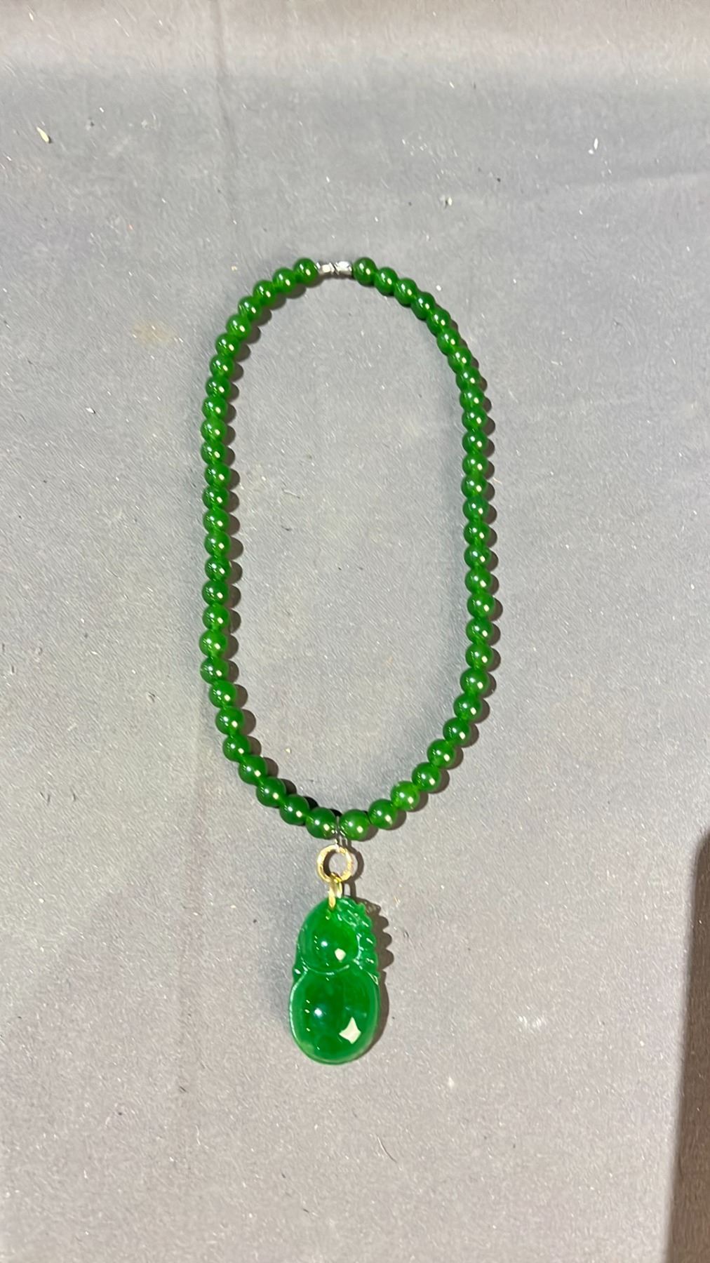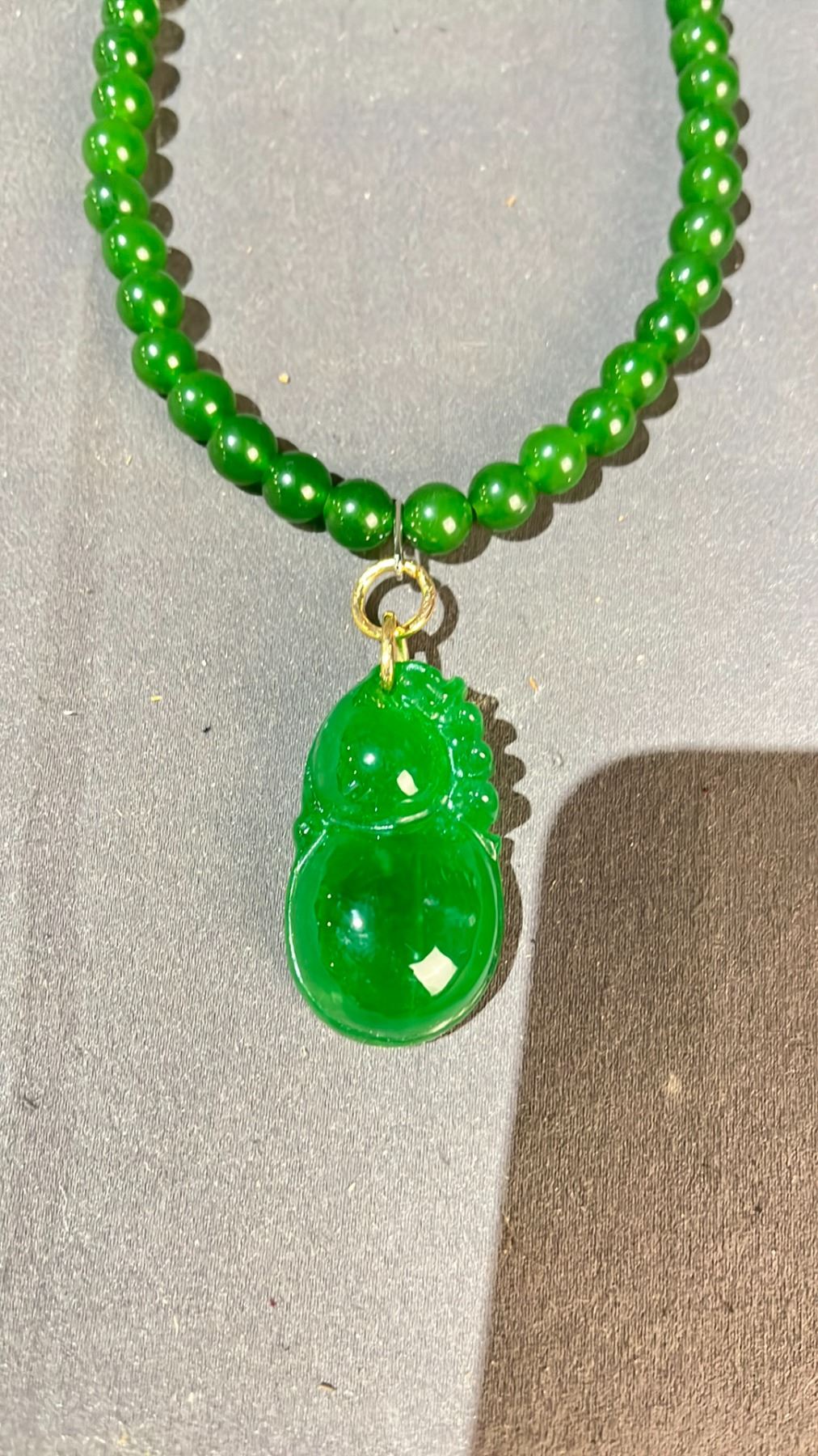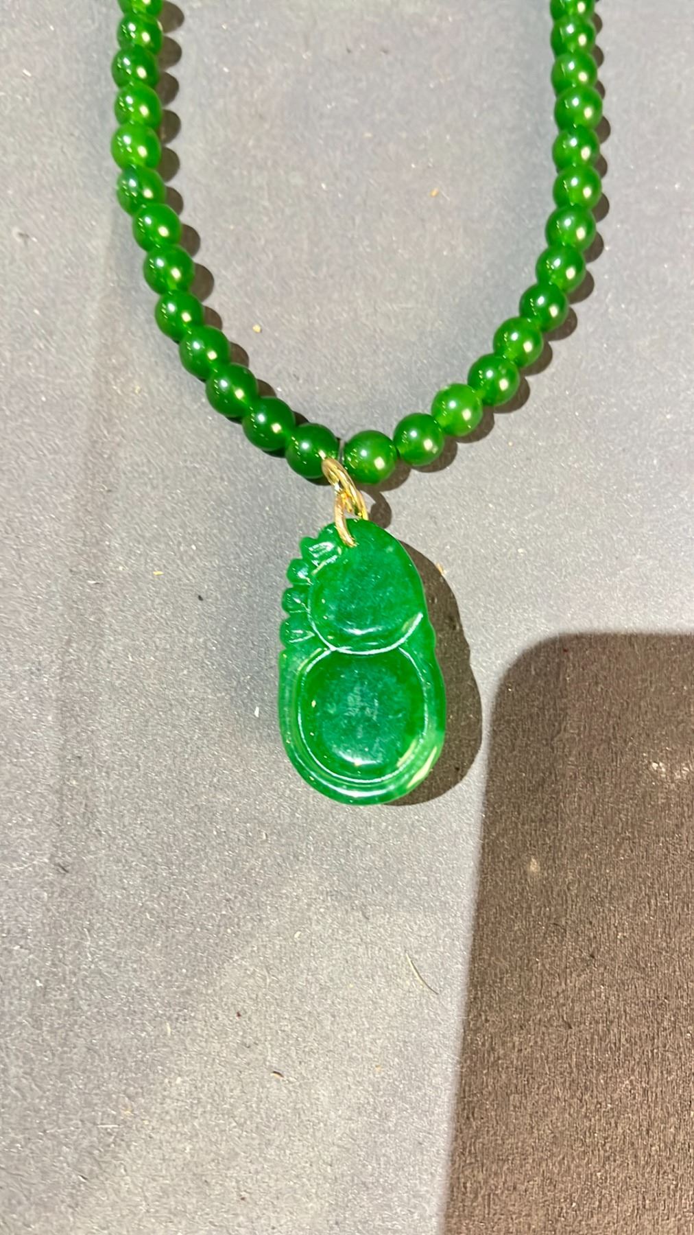 SPINACH GREEN JADEITE BEADS NECKLACE