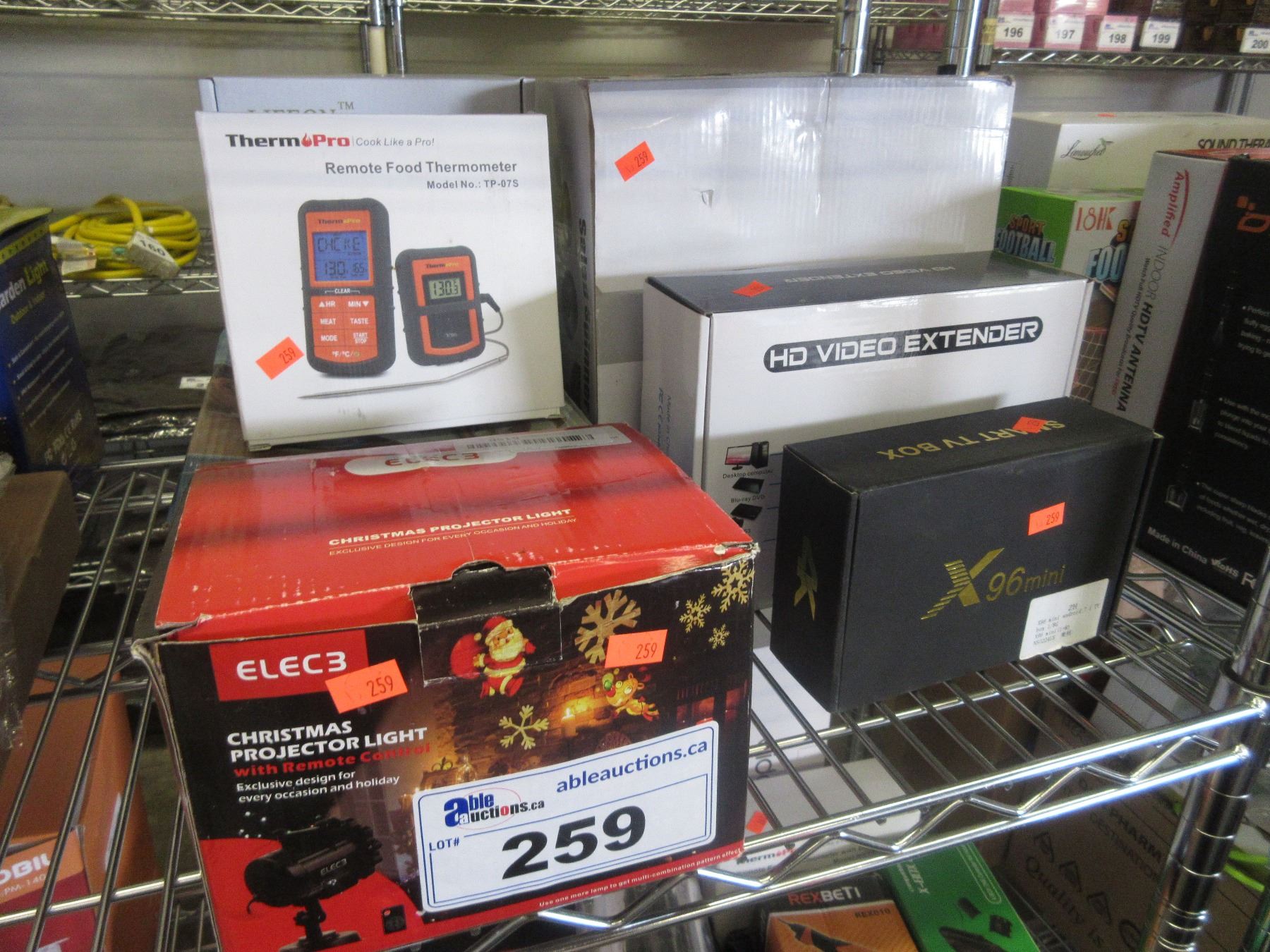 SPINNING SPA BRUSH/SLEEP SOUND MACHINE/XMAS PROJECTION LIGHT/THERMAPRO REMOTE FOOD THERMOMETER/ANDROID TV BOX/HD VIDEO EXTENDER/SALAD SPINNER B1