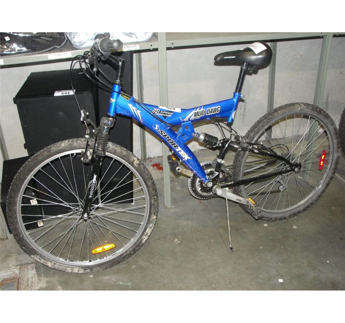 SPORTECH MUD DAWG 18SP FULL SUSPENSION MOUNTAIN BIKE - BLUE AND BLACK