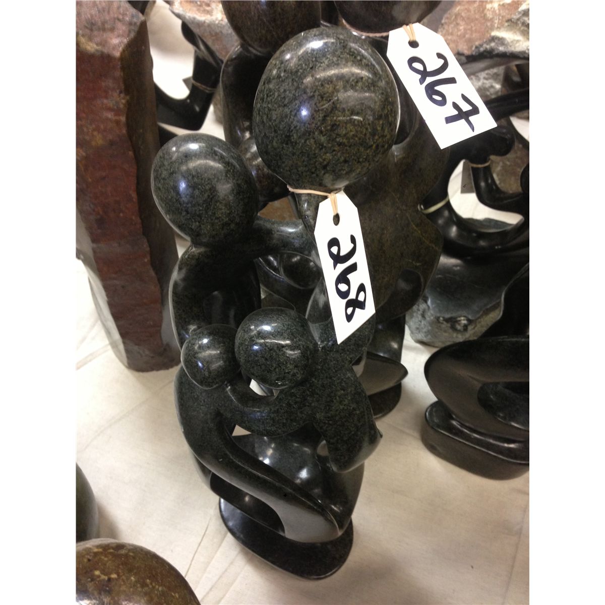 SPRING STONE, FAMILY OF 4, HAND CARVED. 23" TALL