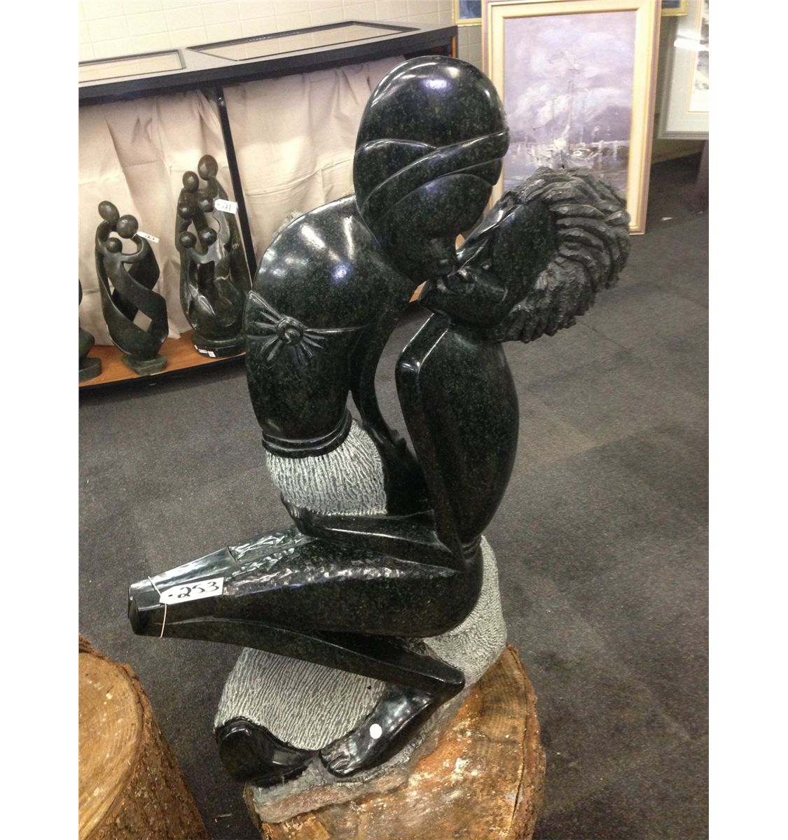 SPRING STONE, "KISSING" HAND CARVED. 38" TALL 20" WIDE GALLERY PRICE $15,000