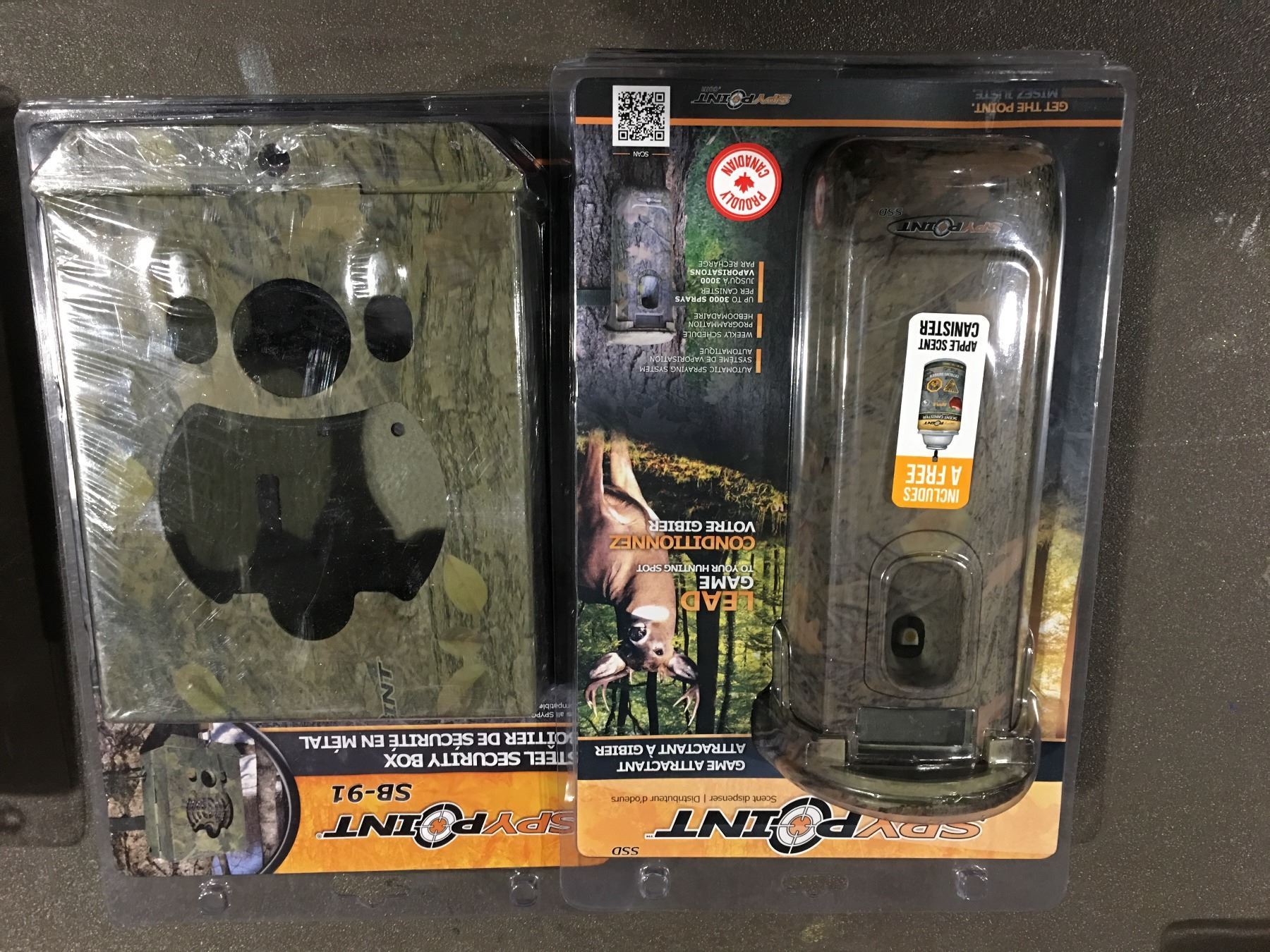 SPY POINT GAME ATTRACTANT & SPY POINT STEEL SECURITY CAMERA BOX