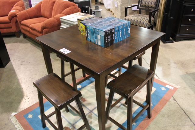 SQUARE WALNUT TABLE WITH 4 STOOLS