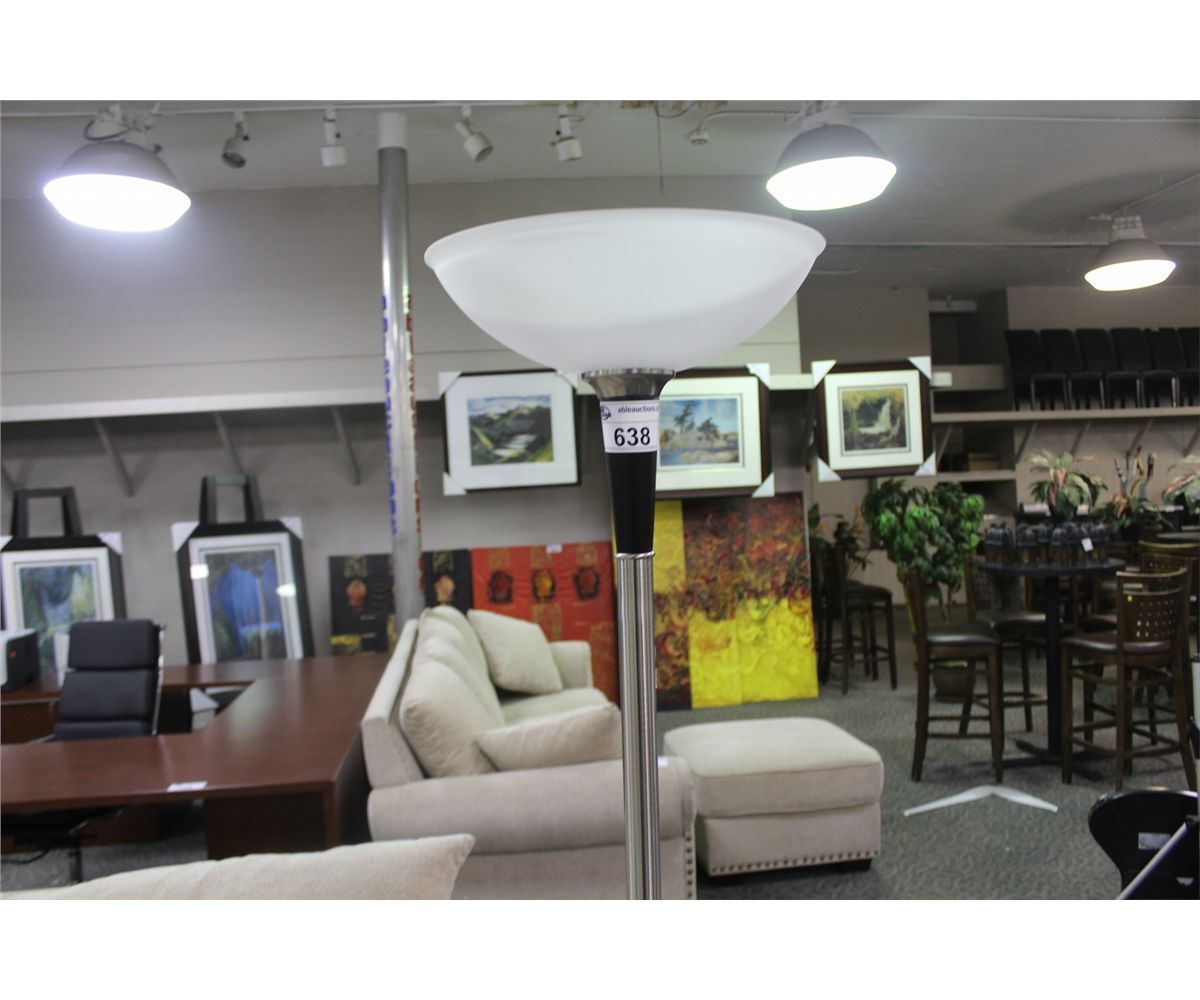 SS 6' TALL FLOOR LAMP WITH FROSTED GLASS SHADE AND WOOD ACCENT
