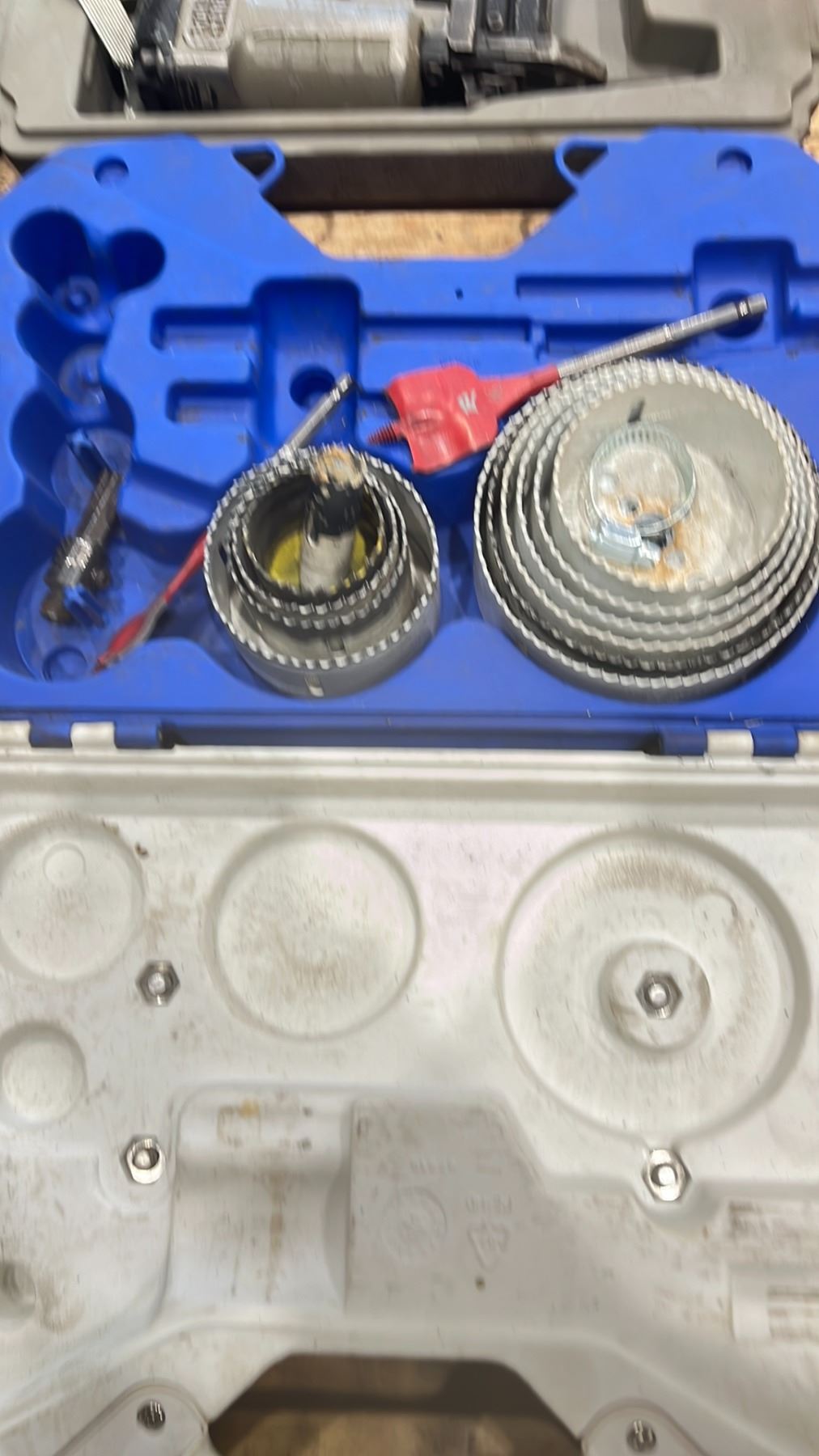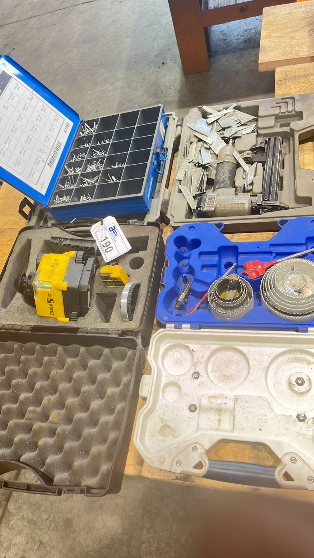 STABILA LMR LASER LEVEL IN HARD TRANSPORT CASE, PNEUMATIC NAILER, HOLE SAW & RIVETS SET