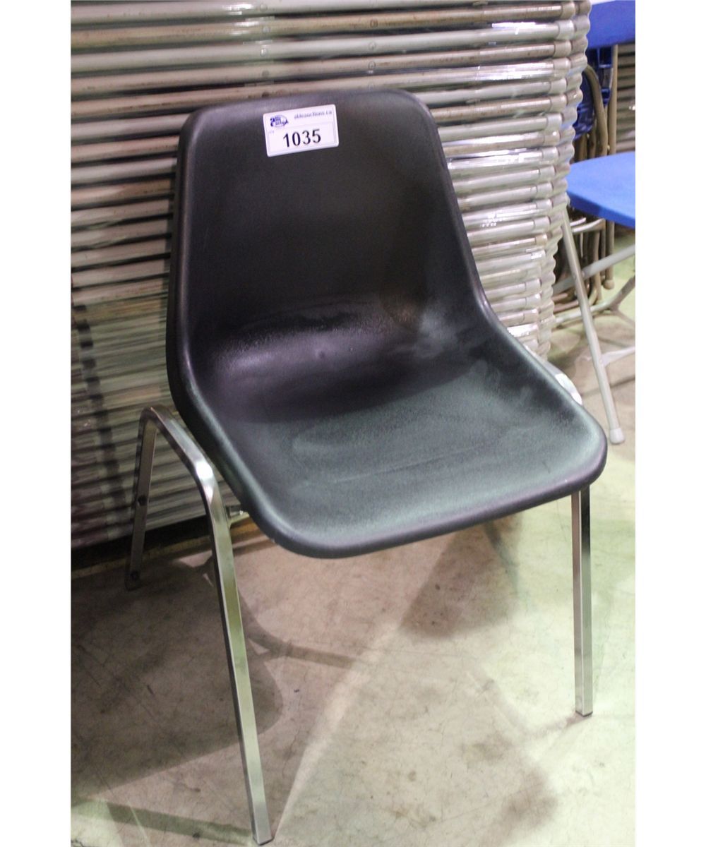 STACK OF 12 BLACK PLASTIC BANQUET CHAIRS