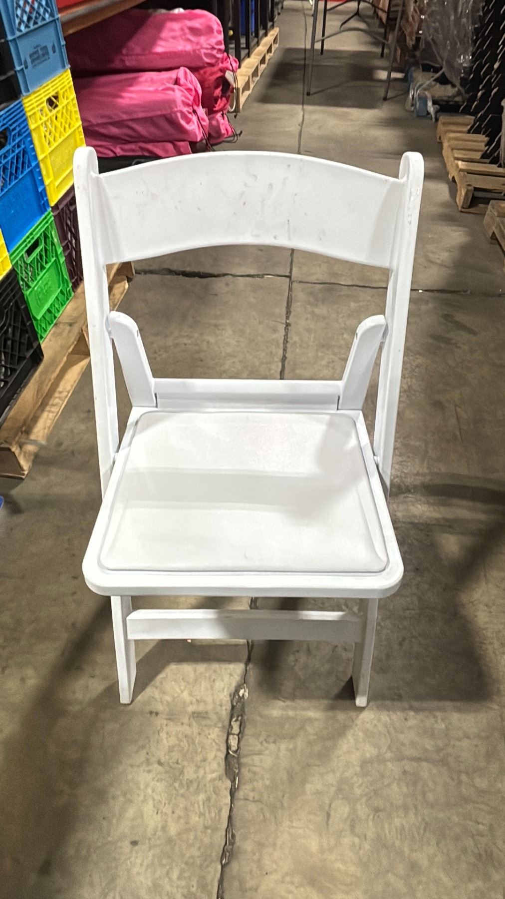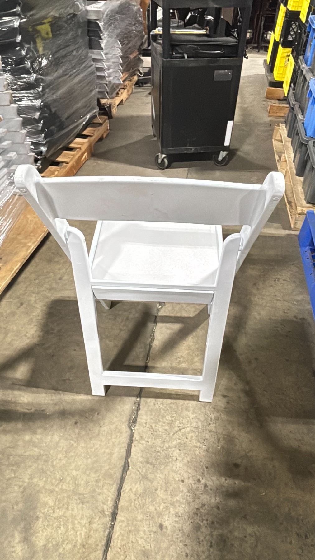 STACK OF 25 WHITE PLASTIC FOLDING EVENT CHAIRS