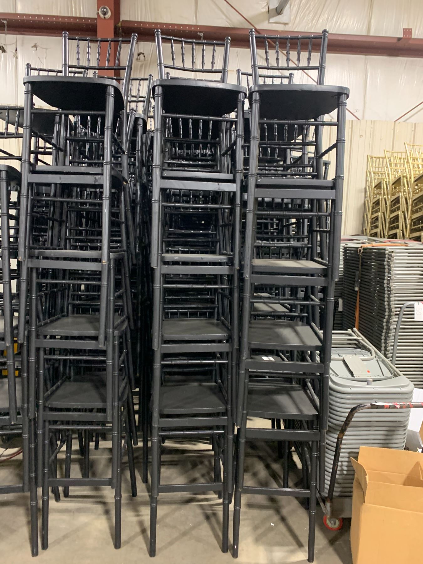 STACK OF 5 BLACK WOOD CHIAVARI EVENT 30"H BAR CHAIRS