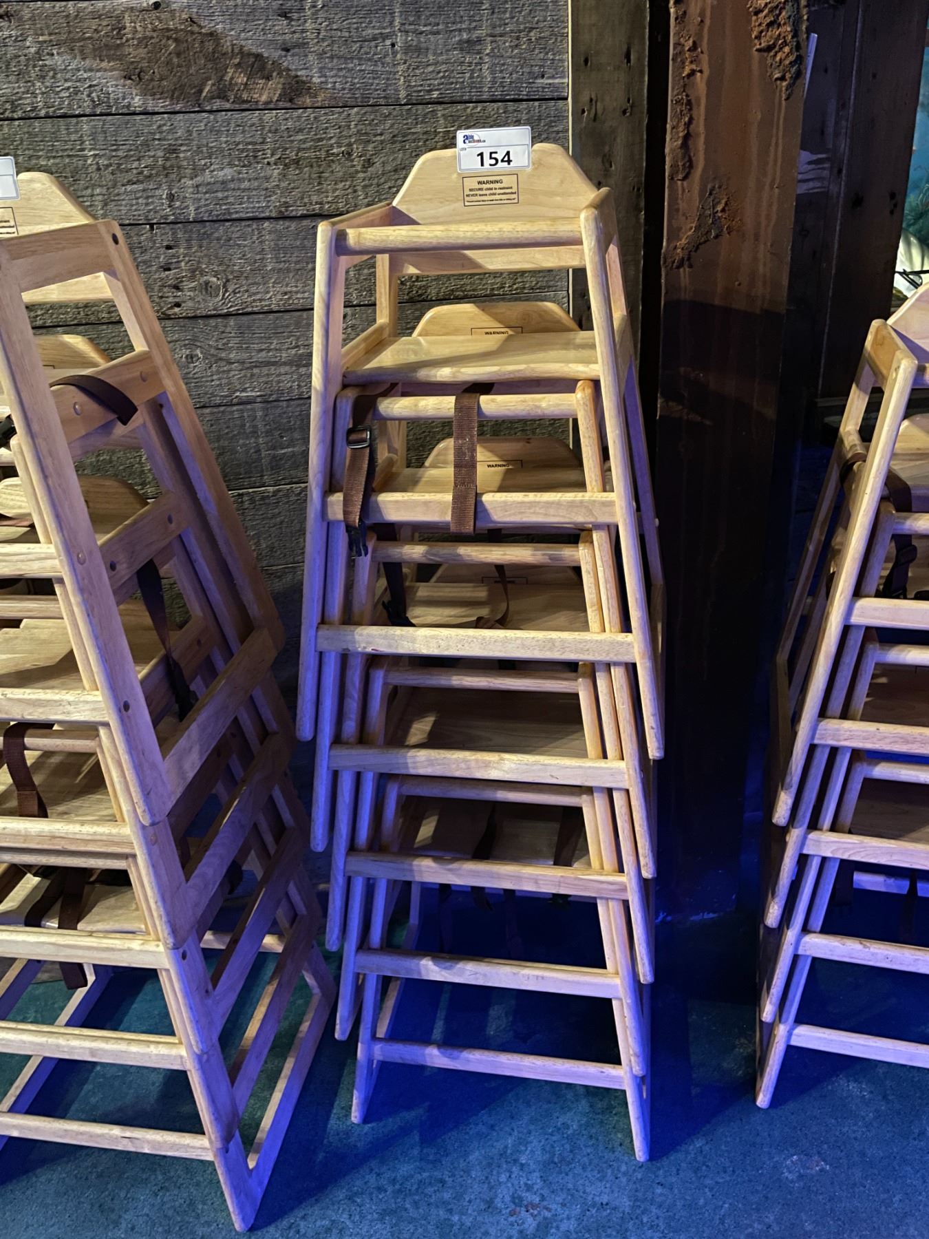 STACK OF 5 NATURAL WOOD COMMERCIAL HIGH CHAIRS