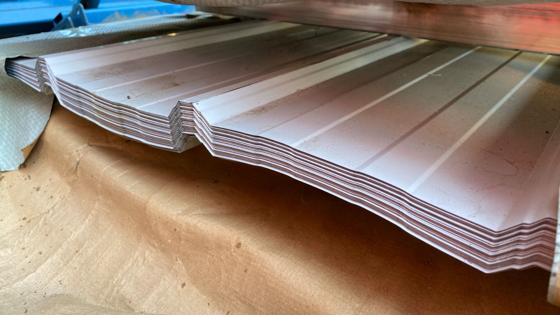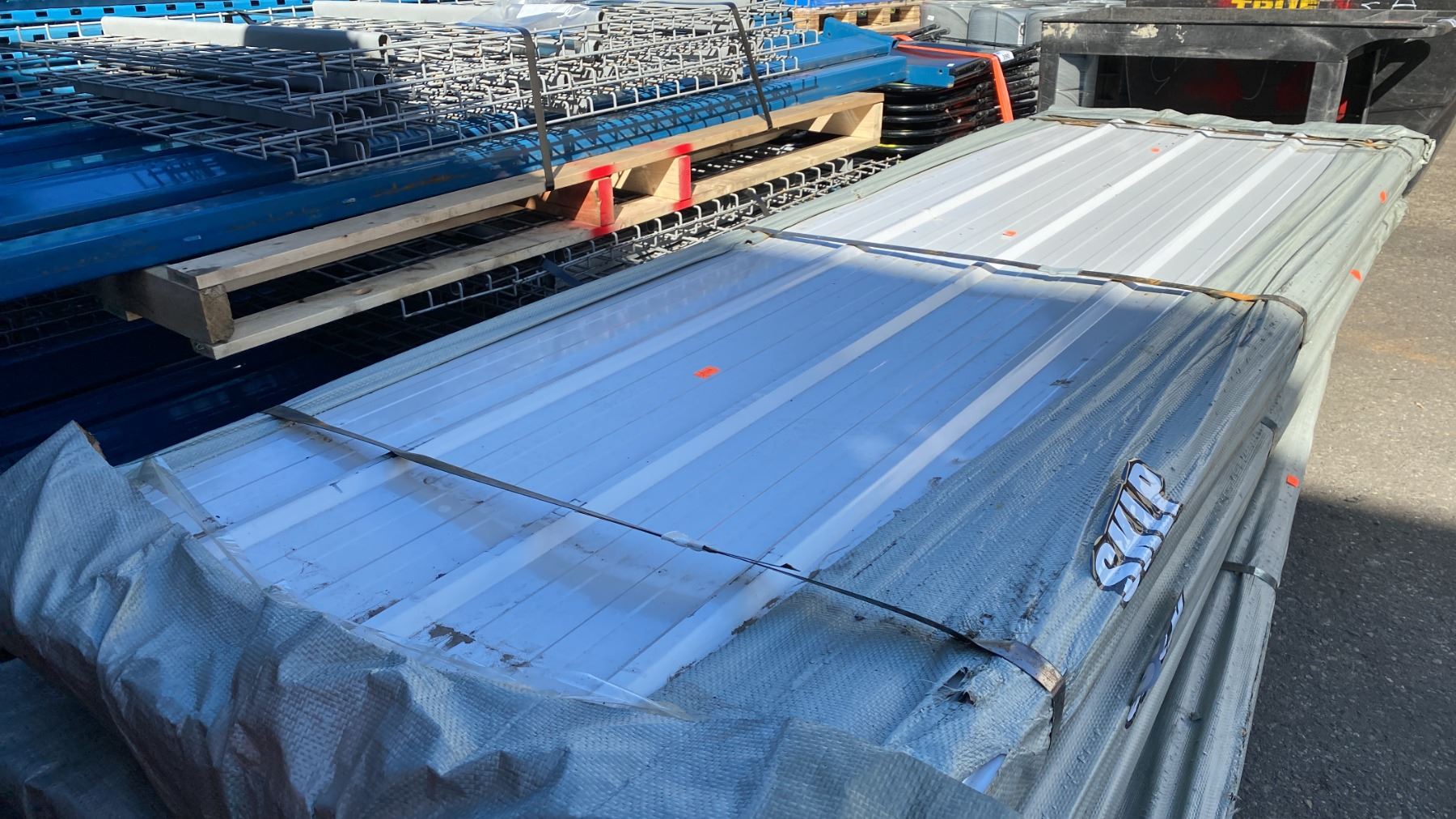 STACK OF 50 SKLP WHITE 10'L X 3' 2"W INDUSTRIAL CORRUGATED METAL ROOF / WALL SHEETING