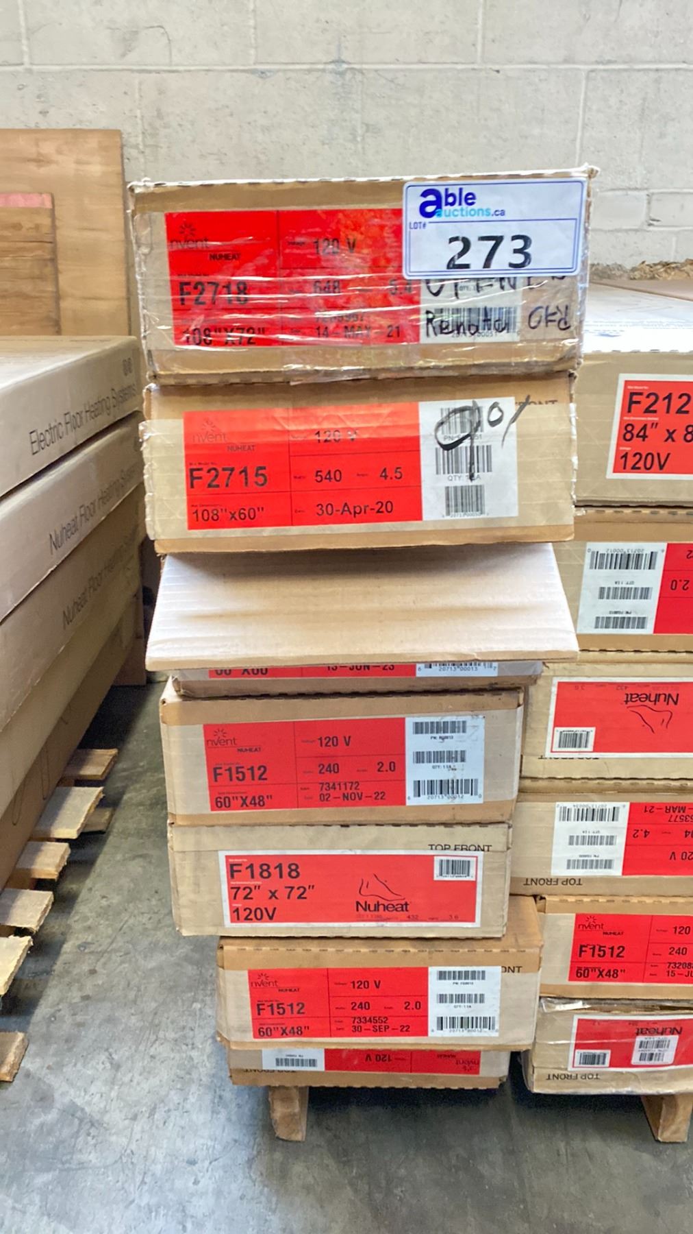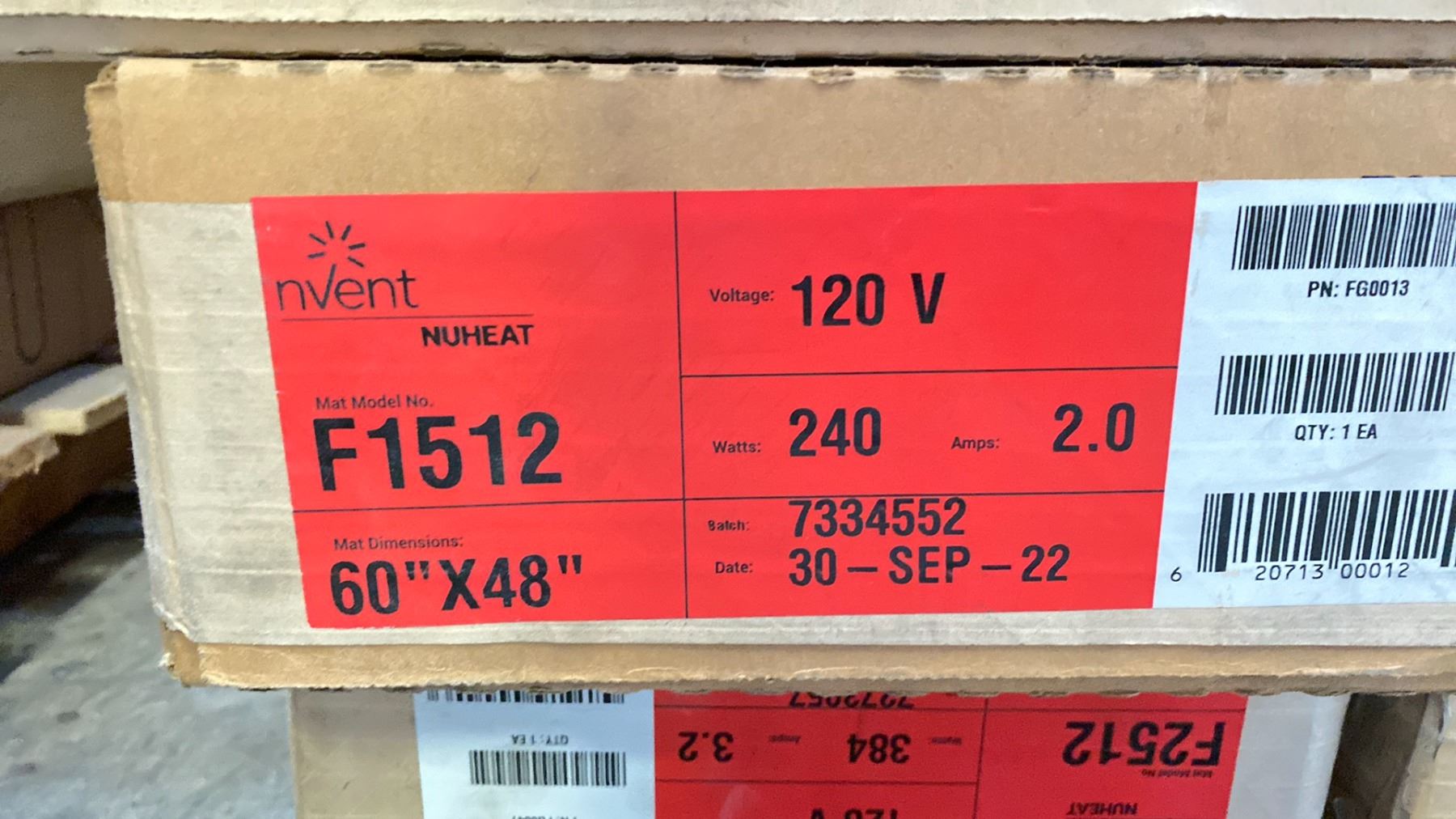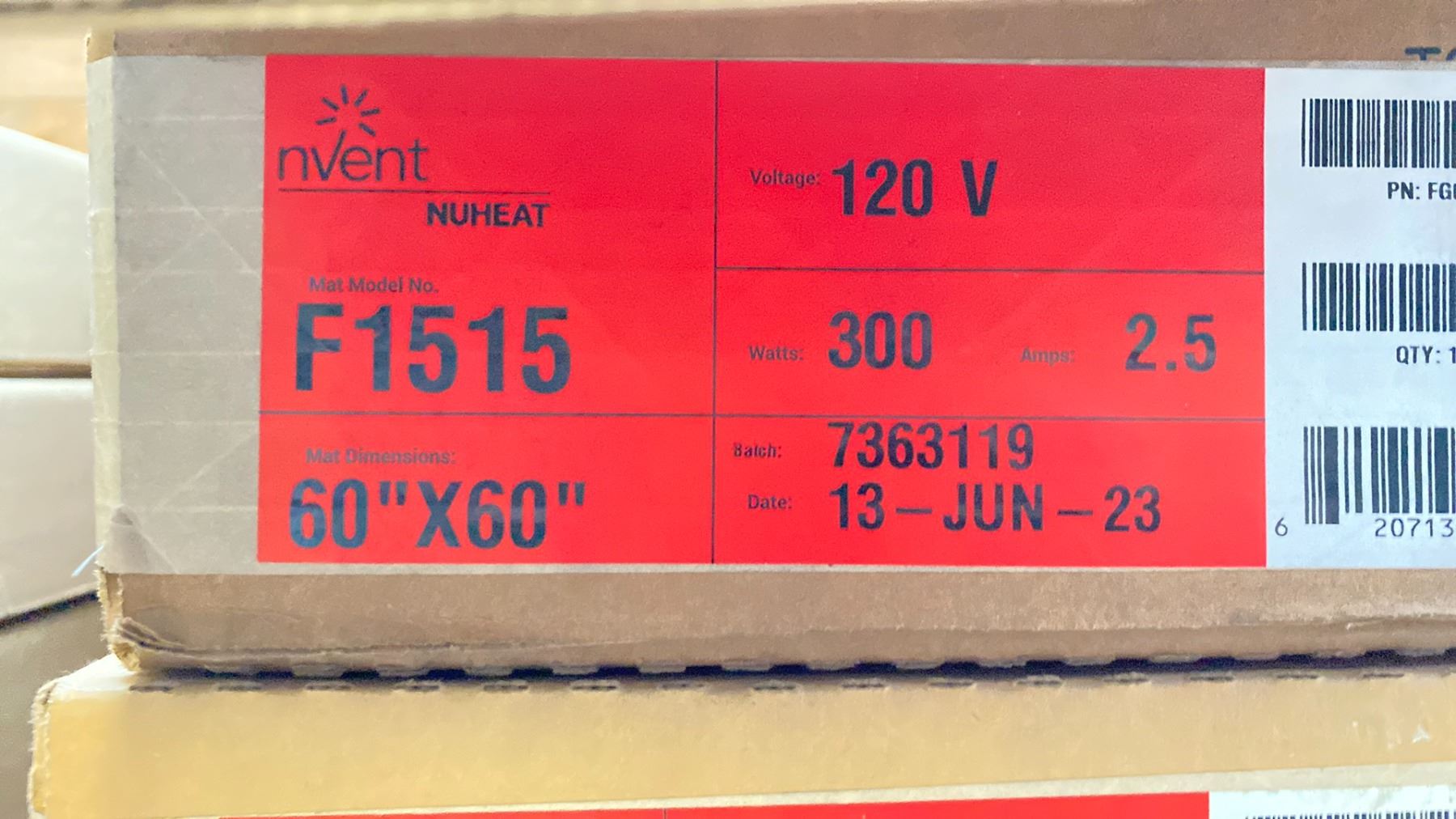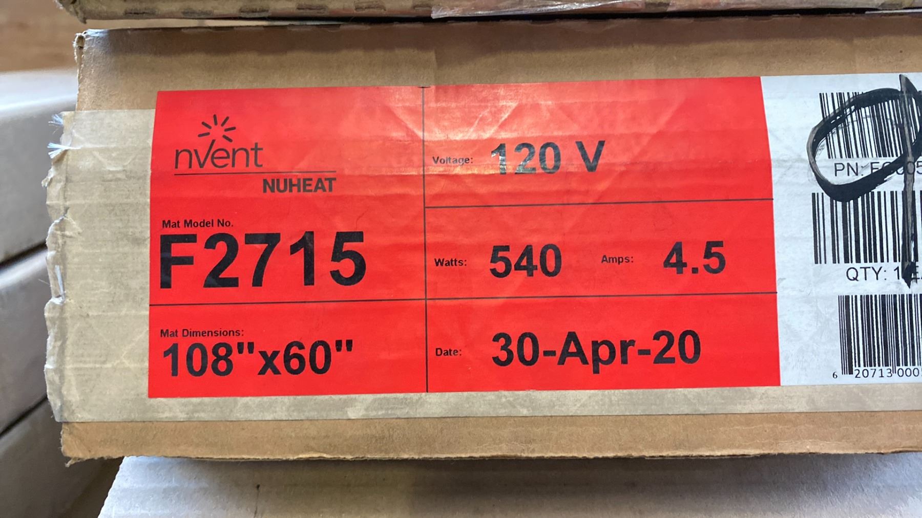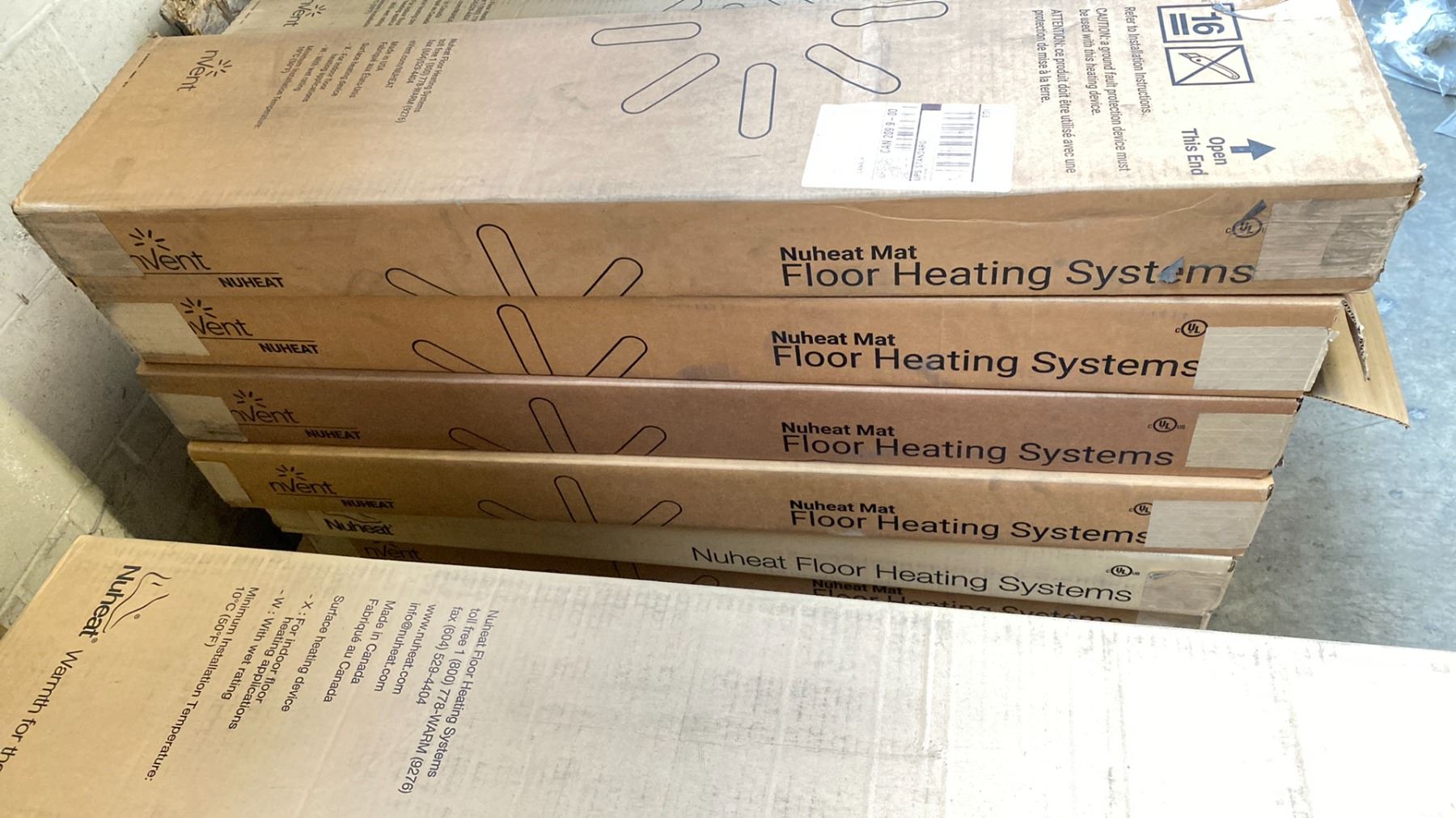 STACK OF 7 ASSORTED NVENT NUHEAT 120V MAT FLOOR HEATING SYSTEMS