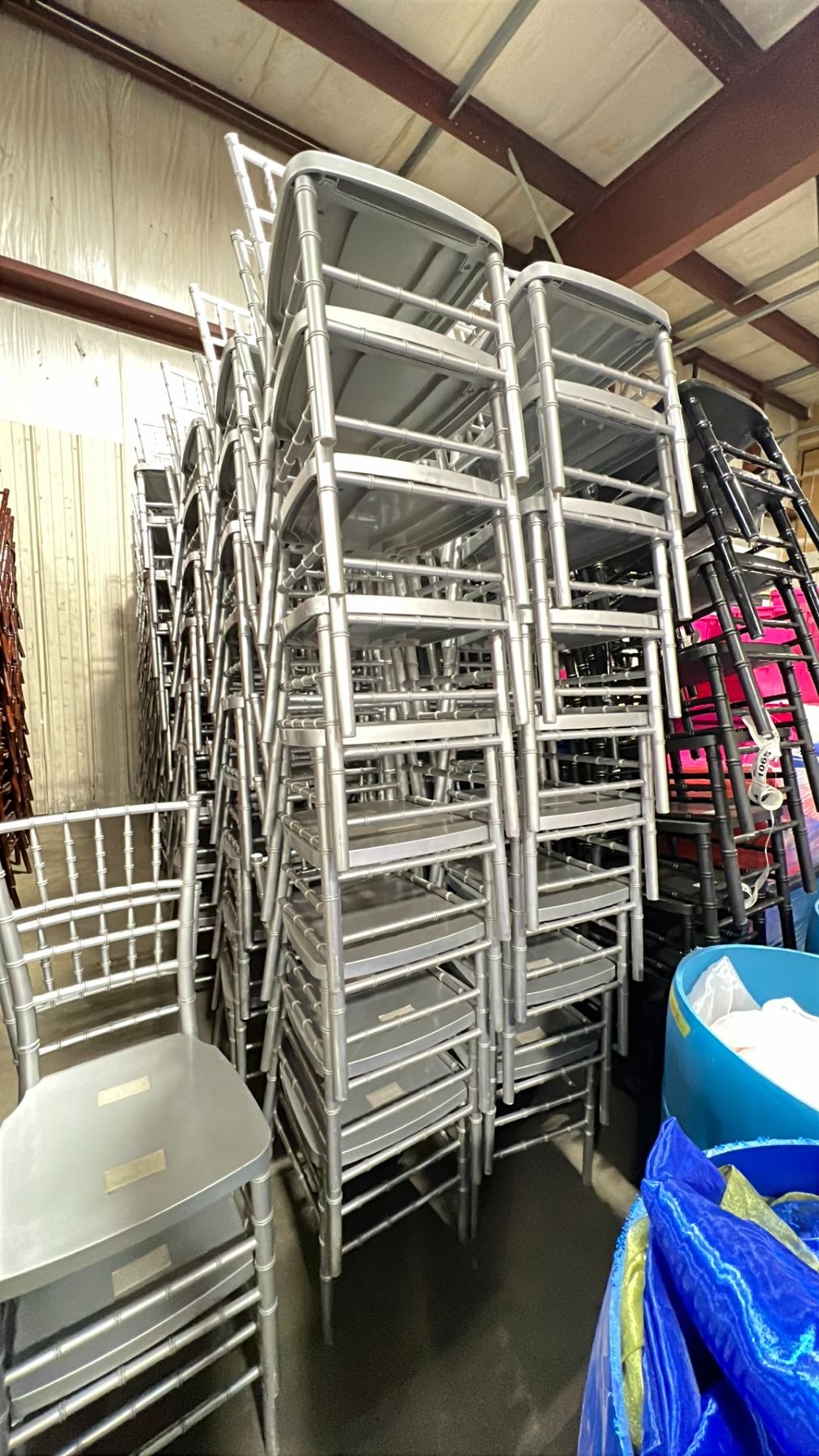 STACK OF 9 SILVER RESIN CHIAVARI EVENT 18" CHAIRS