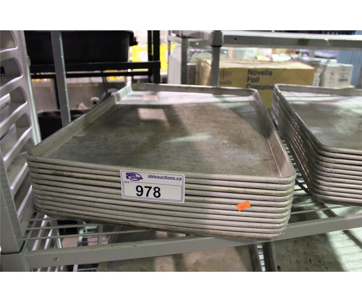 STACK OF ALUMINUM BAKERS TRAYS