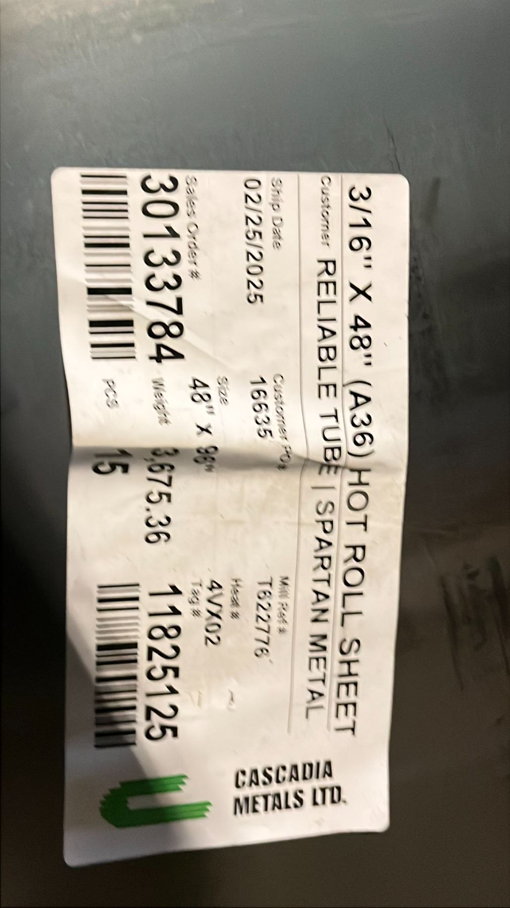 STACK OF APPROX 15 SHEETS OF FABRICATING STEEL 96"L X 48"W X 3/16" THICK