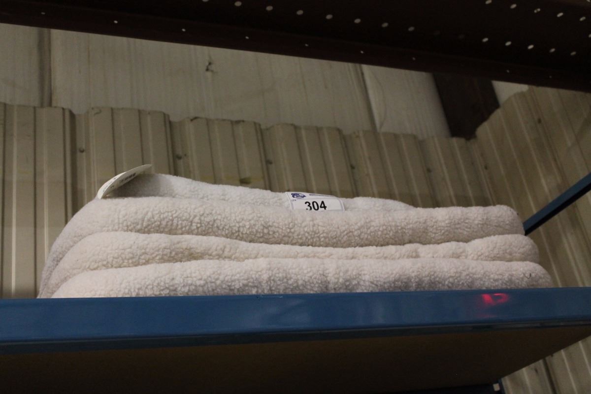 STACK OF ASSORTED WHITE RELAX DOG BEDS