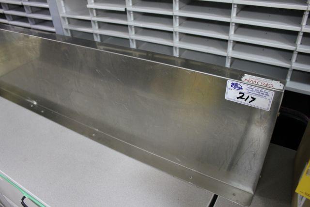 STACK OF BUS PANS & STAINLESS STEEL WALLMOUNT SHELF
