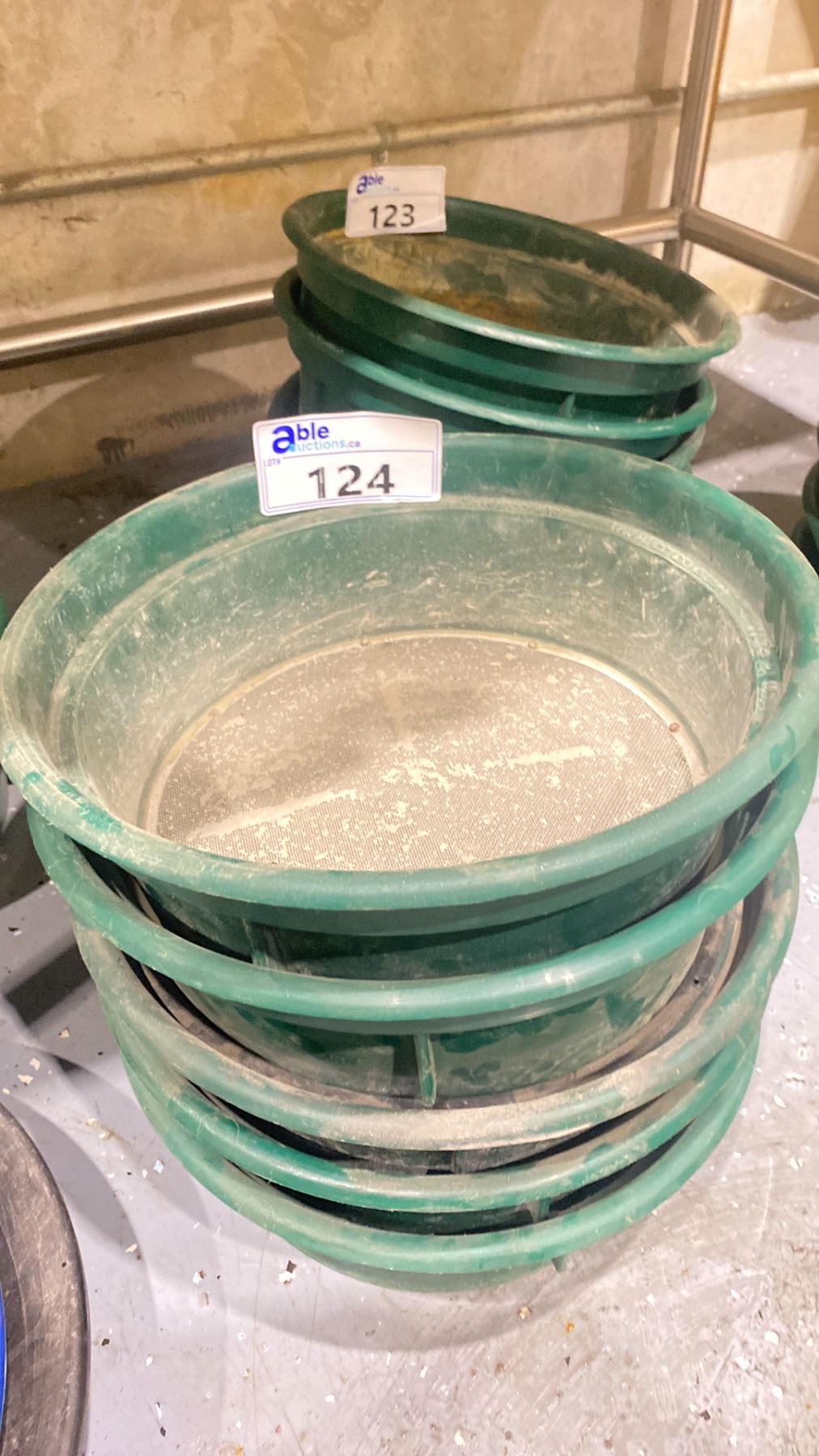STACK OF KEENE ENGINEERING STACKABLE STAINLESS MESH CLASSIFYING SIEVES