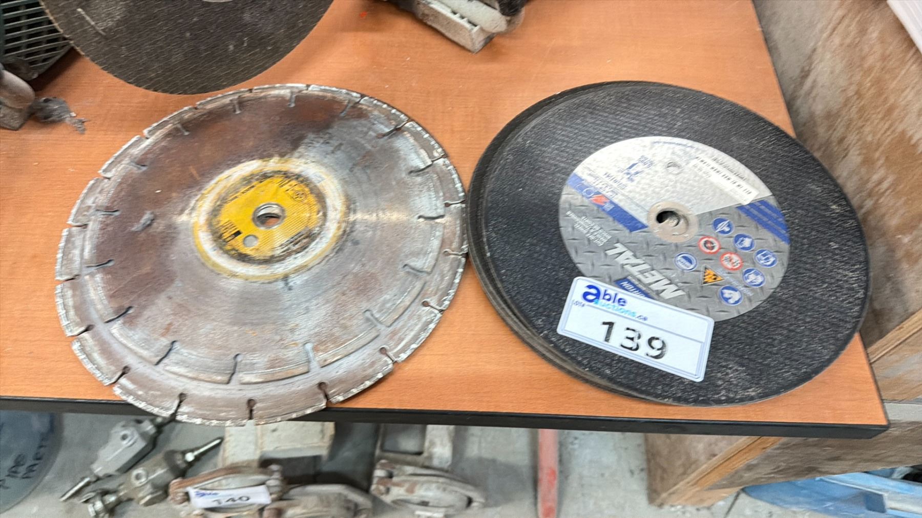 STACK OF METAL CUTTING SAW BLADES & CEMENT CUTTING SAW BLADES