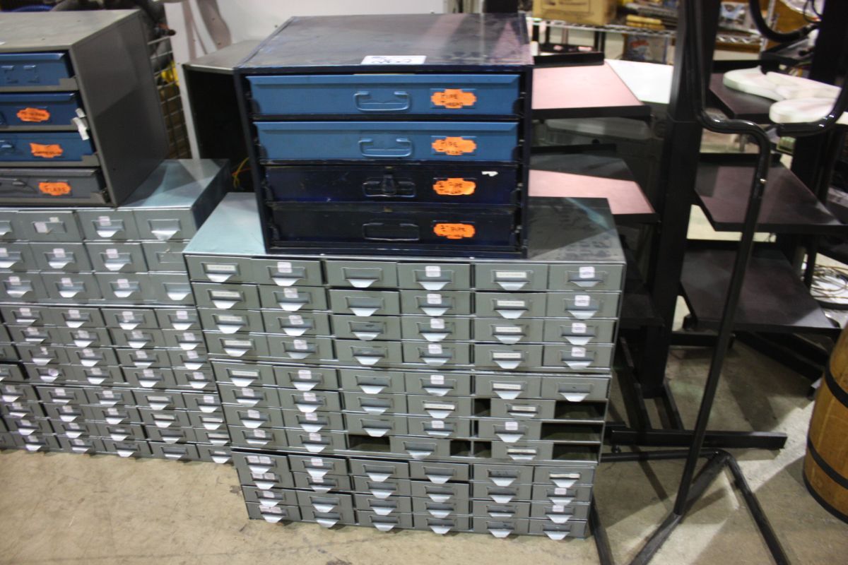 STACK OF METAL PARTS DRAWERS AND CONTENTS